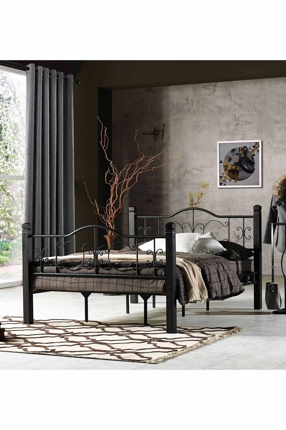 Yakamoz Çift Kişilik Ferforje Ahşap Metal Karyola Siyah