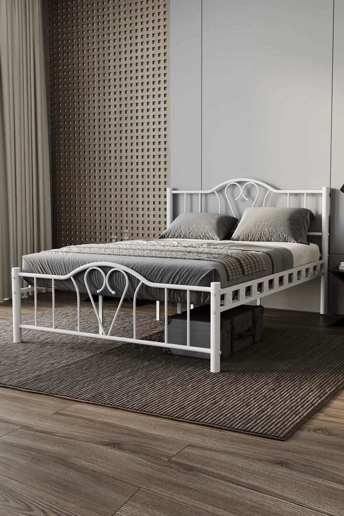 Orkide Çift Kişilik Ferforje Metal Karyola Beyaz