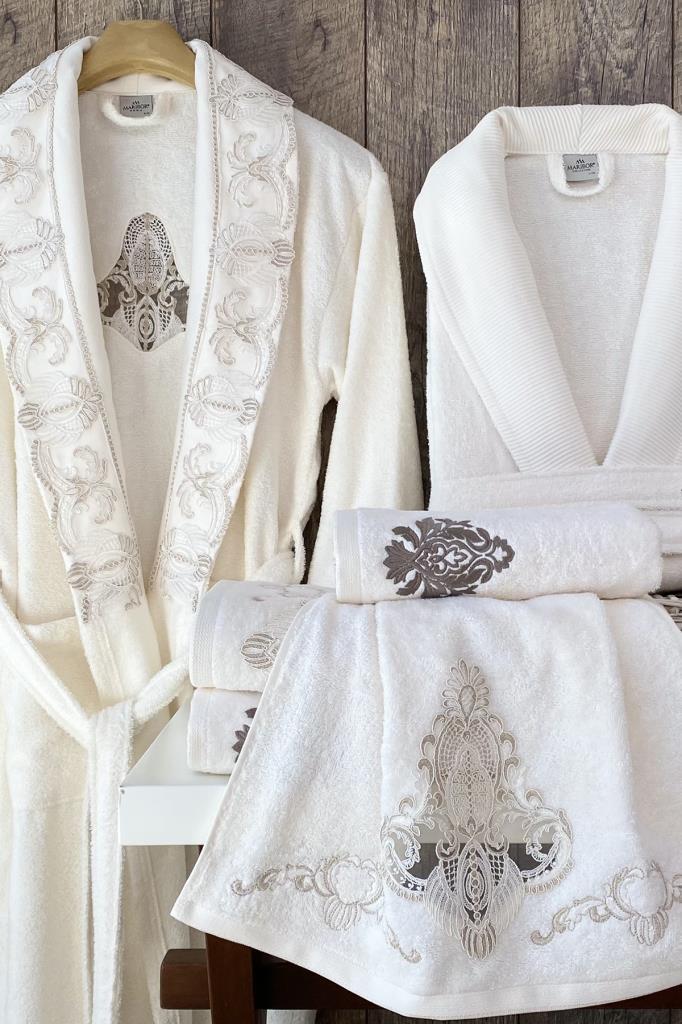 Aramis Dantelli 6 Parça Bambu Bornoz Takımı Krem Beyaz