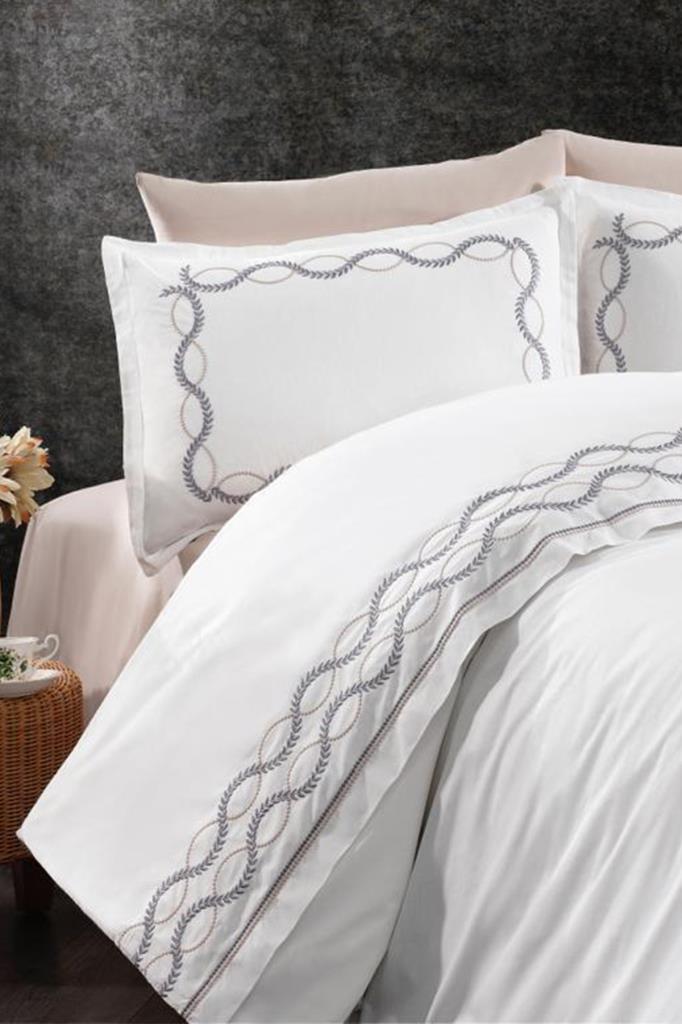 Başak Nakışlı %100 Pamuk Çift Kişilik Nevresim Takımı Gri
