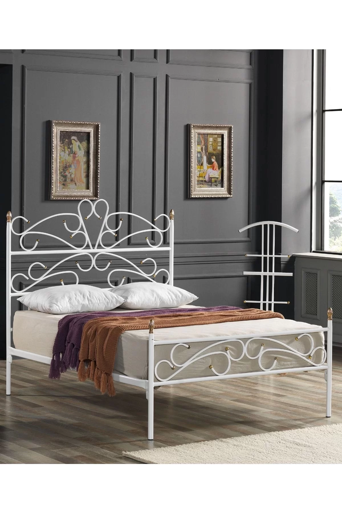Bergama Çift Kişilik Başlıklı Yatak Odası Ferforje Metal Karyola 140x190 Ölçülü
