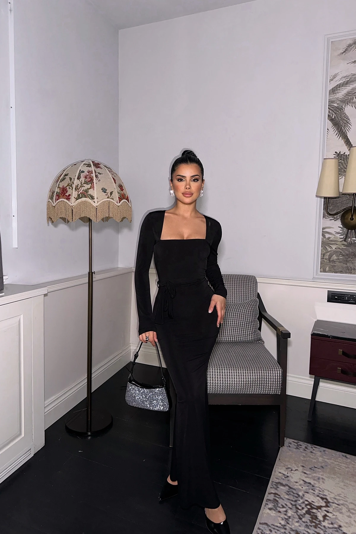 Black Amy Tie Up Dress Made from sandy fabric Size S is used in the image Dress Length: 120 cm Bust: 32 cm Model Measurements: Height: 160 Weight: 50 Chest: 80 Waist: 62 Hip: 94