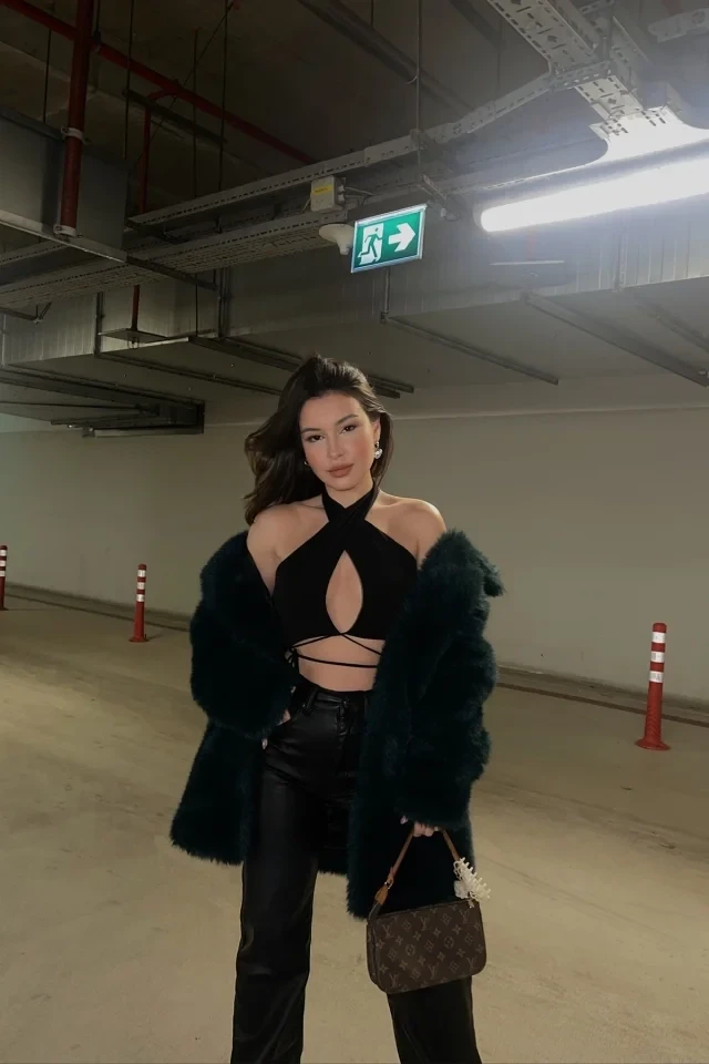 Black Lina Crop Top It is made of sandy fabric. Size S was used on the model. Crop length is 38 cm, chest is 34 cm. Model Height 160 kg 52 Chest 80 Waist 60 Hips 97.