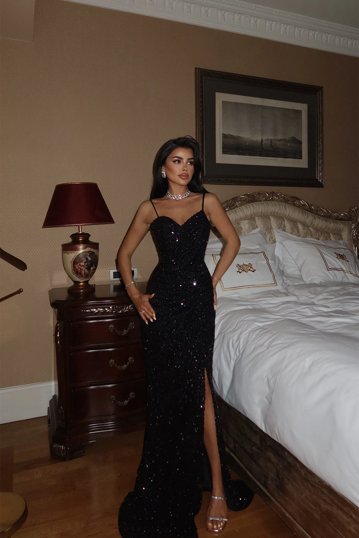 Black Manish Glitter Dress In the image, size 38 is used. Height:154 cm Waist.30 cm Chest:33 cm Model Measurements Height 158 ​​Weight 52 Chest 80 Waist 62 Hip 93