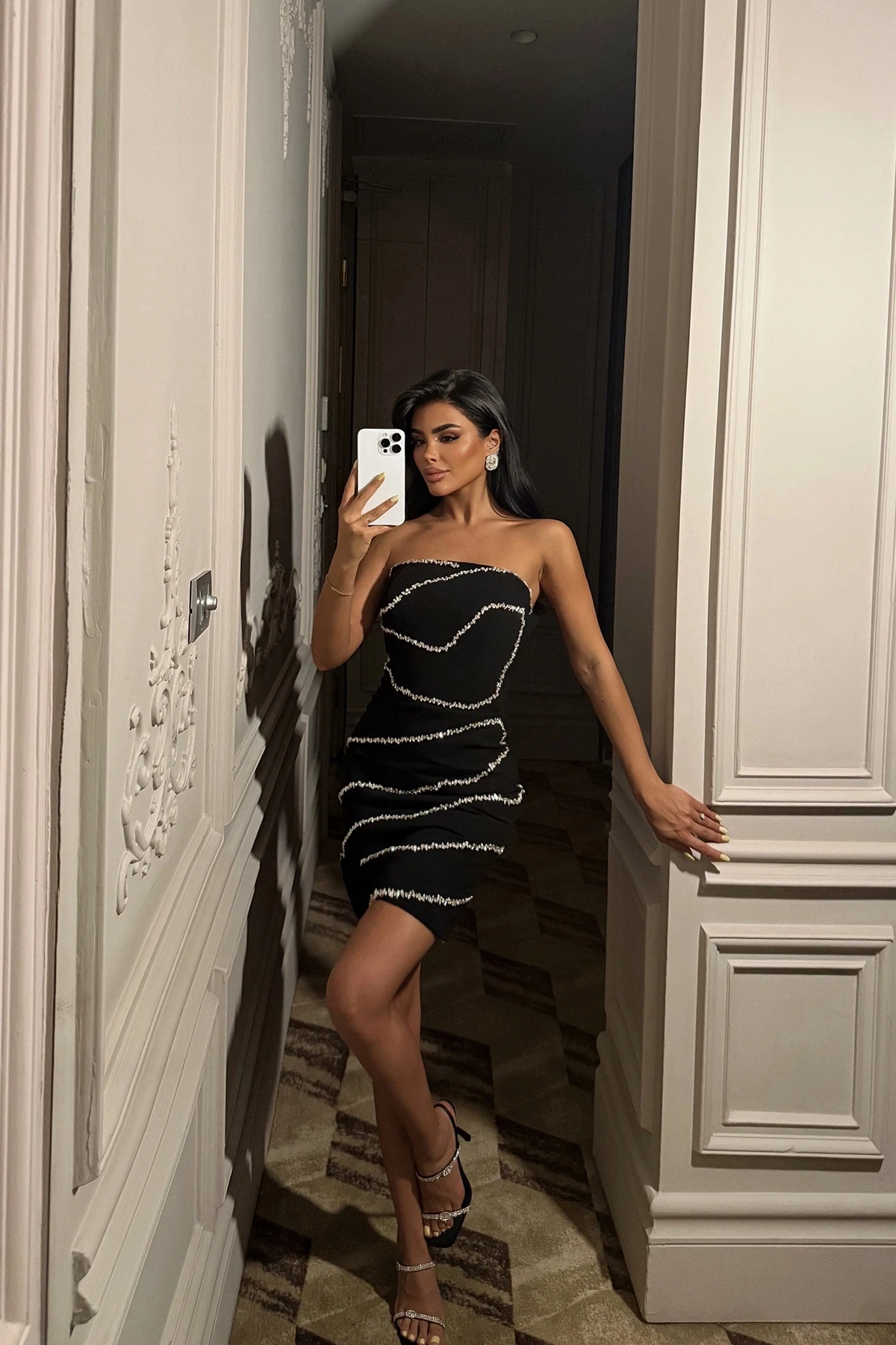 Black Stone Detail Strapless Dress