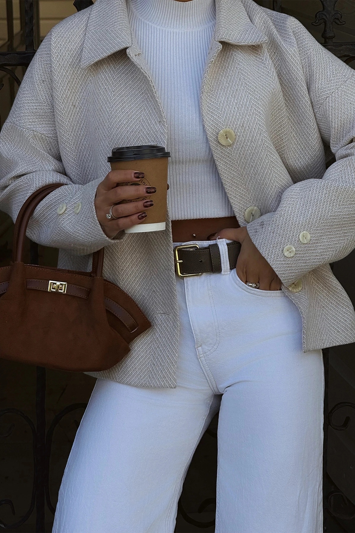 Cream Pocket Detail Double Breasted Collar Jacket