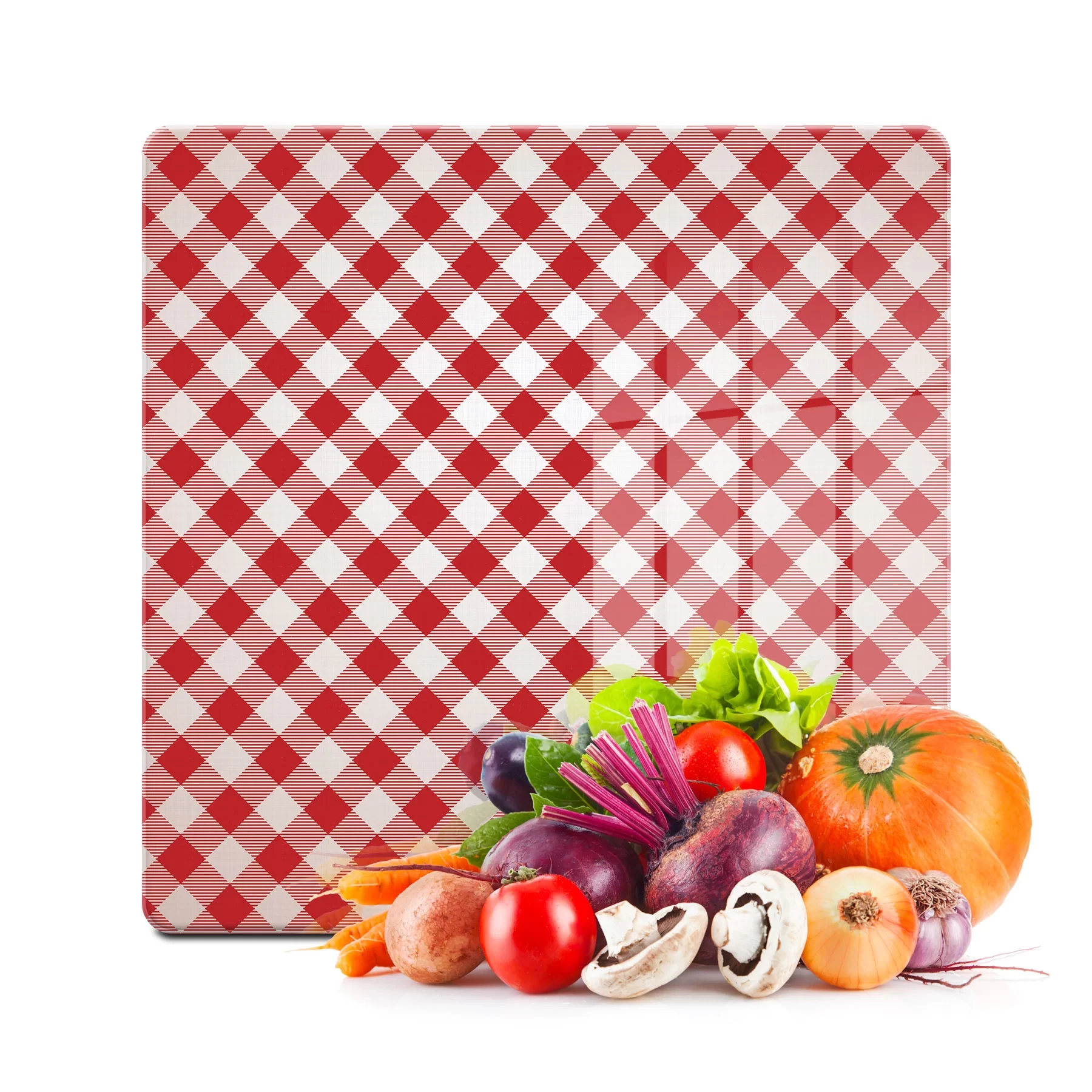 Decovetro Cam Kesme Tahtası ve Sunumluk Kare Kırmızı Beyaz Desenli 30x30 Cm