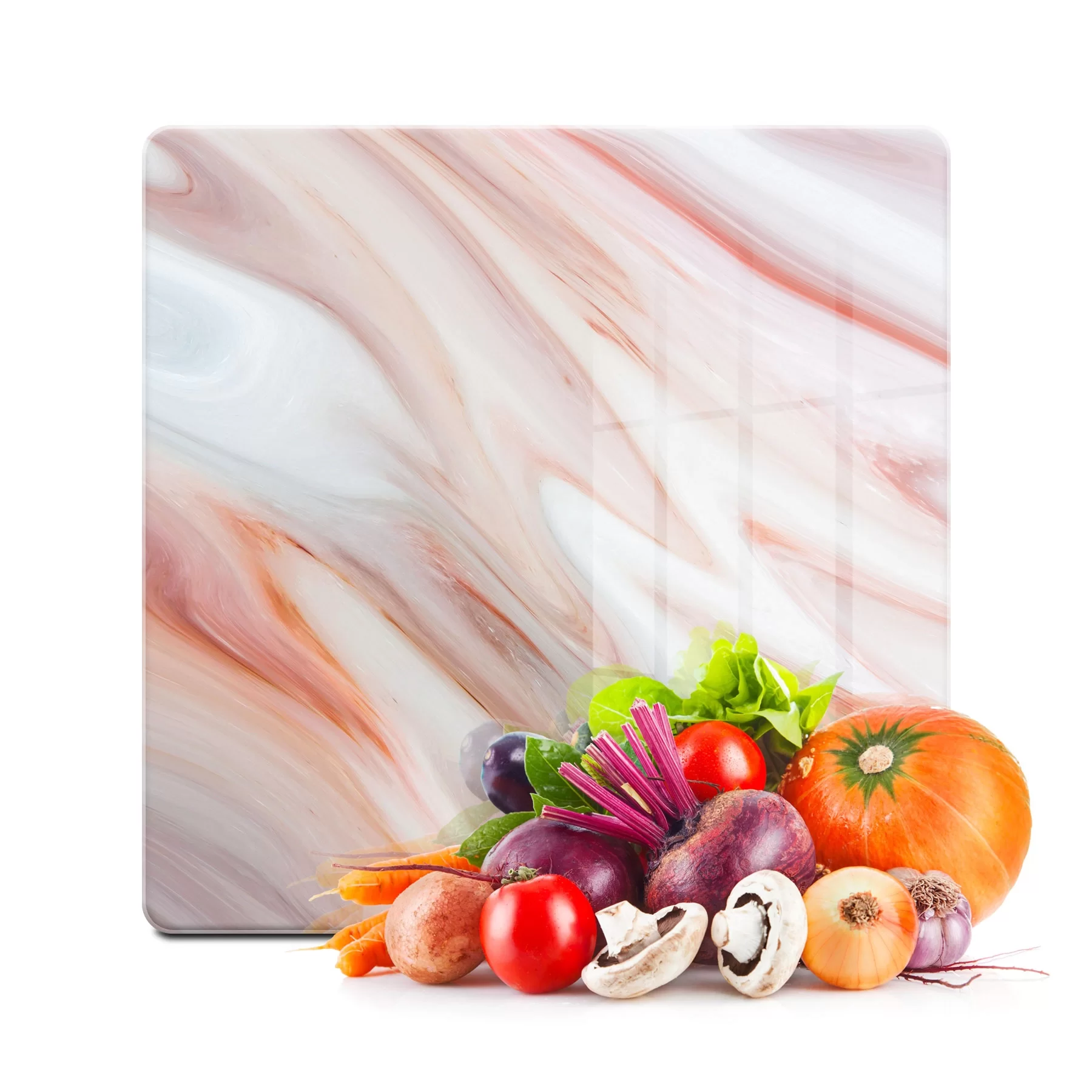 Decovetro Cam Kesme Tahtası ve Sunumluk Kare Kırmızı Mermer Desenli 30x30 Cm