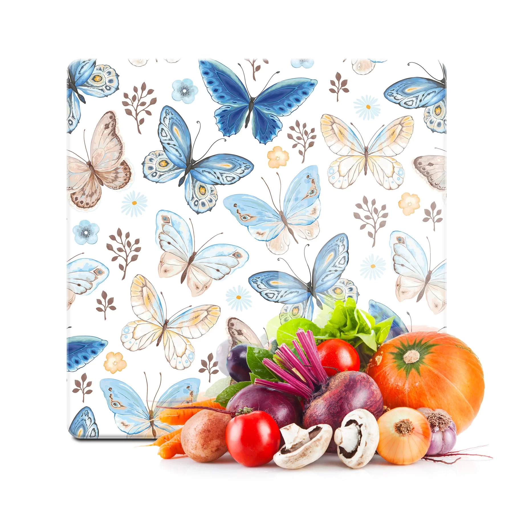 Decovetro Cam Kesme Tahtası ve Sunumluk Kare Kelebek Desenli 30x30 Cm