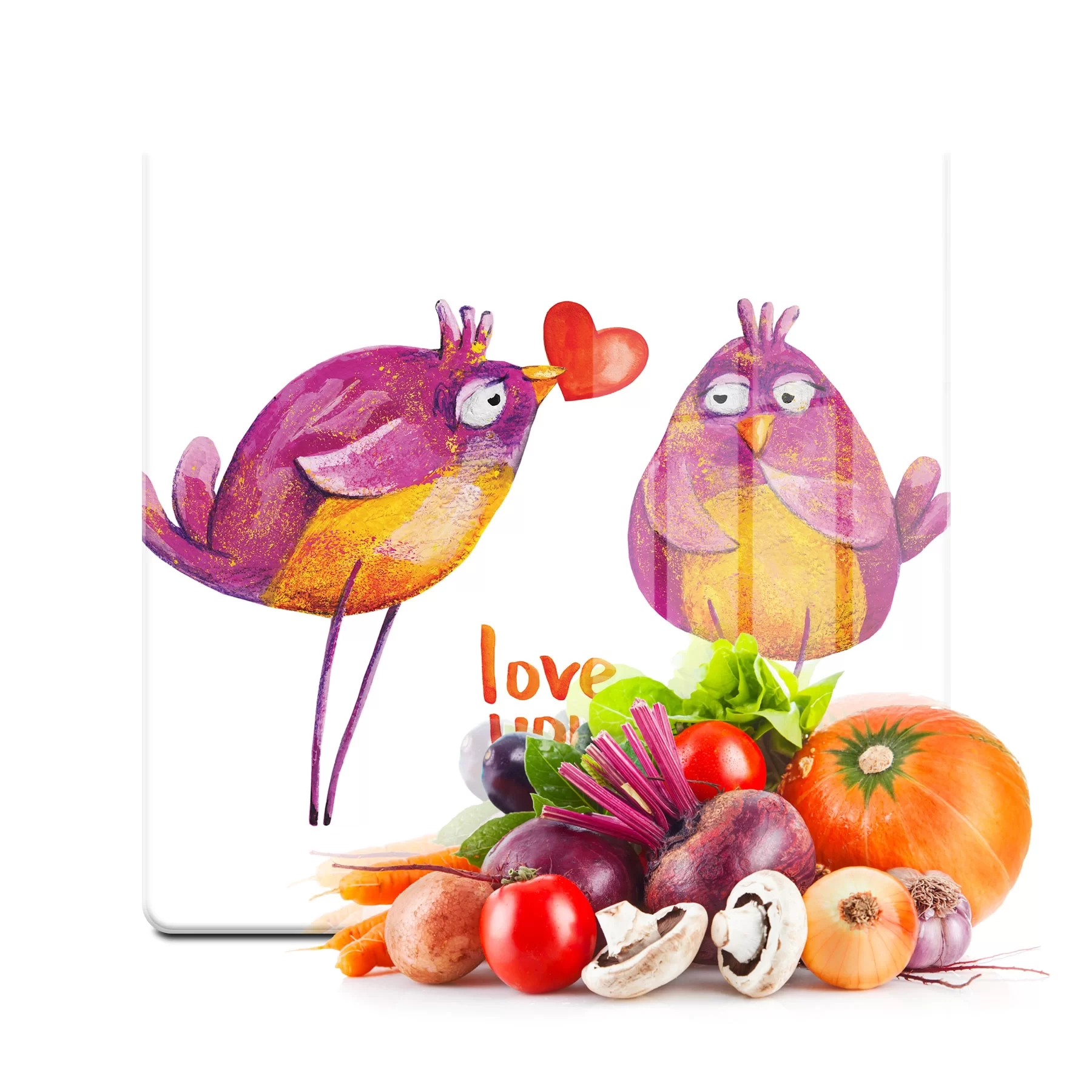 Decovetro Cam Kesme Tahtası ve Sunumluk Kare Love You Bird Desenli 30x30 Cm
