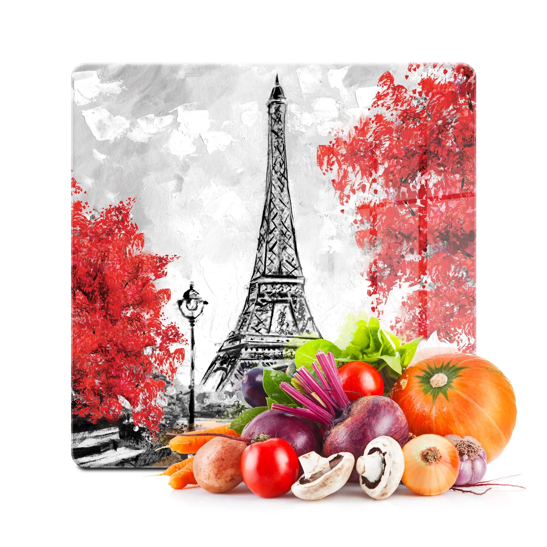 Decovetro Cam Kesme Tahtası ve Sunumluk Kare Paris Eyfel Desenli 30x30 Cm