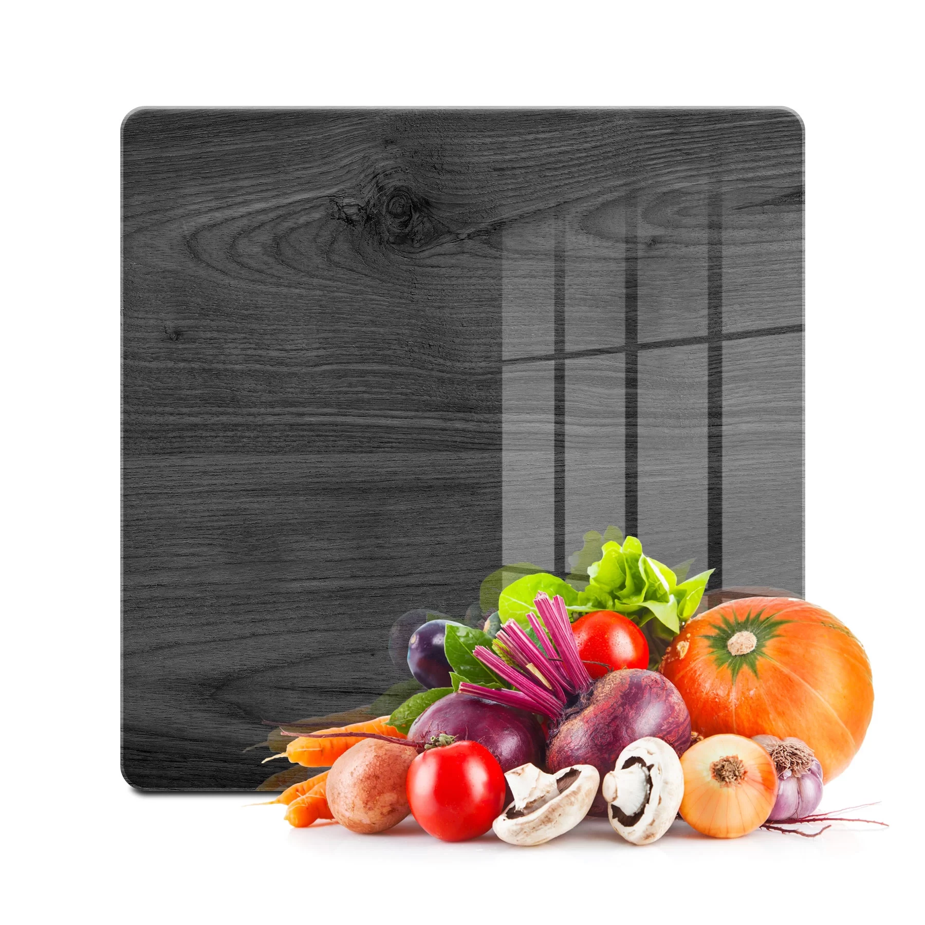Decovetro Cam Kesme Tahtası ve Sunumluk Kare Siyah Ahşap Desenli 30x30 Cm