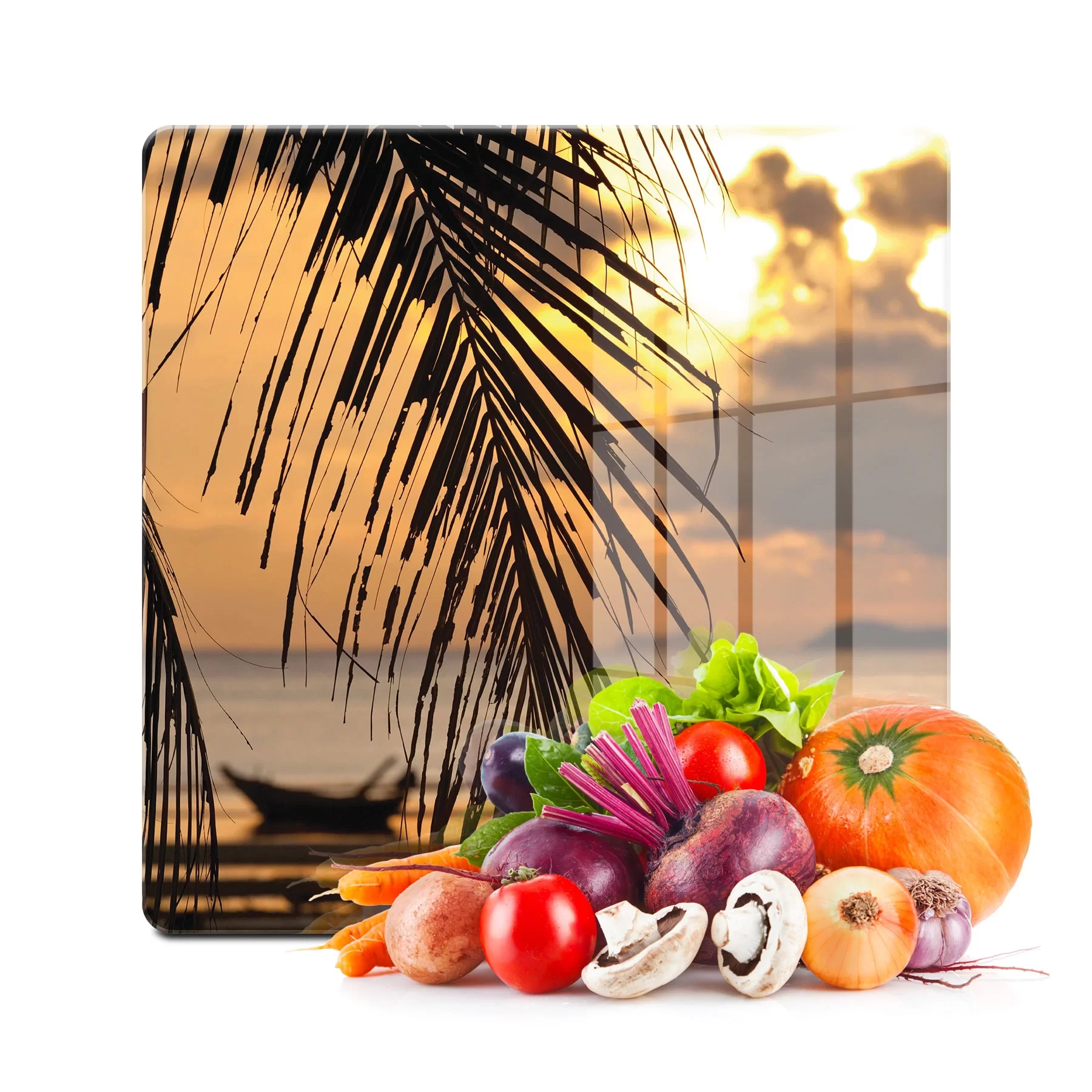 Decovetro Cam Kesme Tahtası ve Sunumluk Kare Sunset Sahil Desenli 30x30 Cm