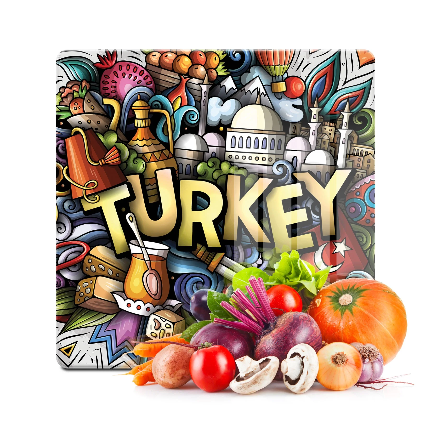 Decovetro Cam Kesme Tahtası ve Sunumluk Kare Turkey Desenli 30x30 Cm