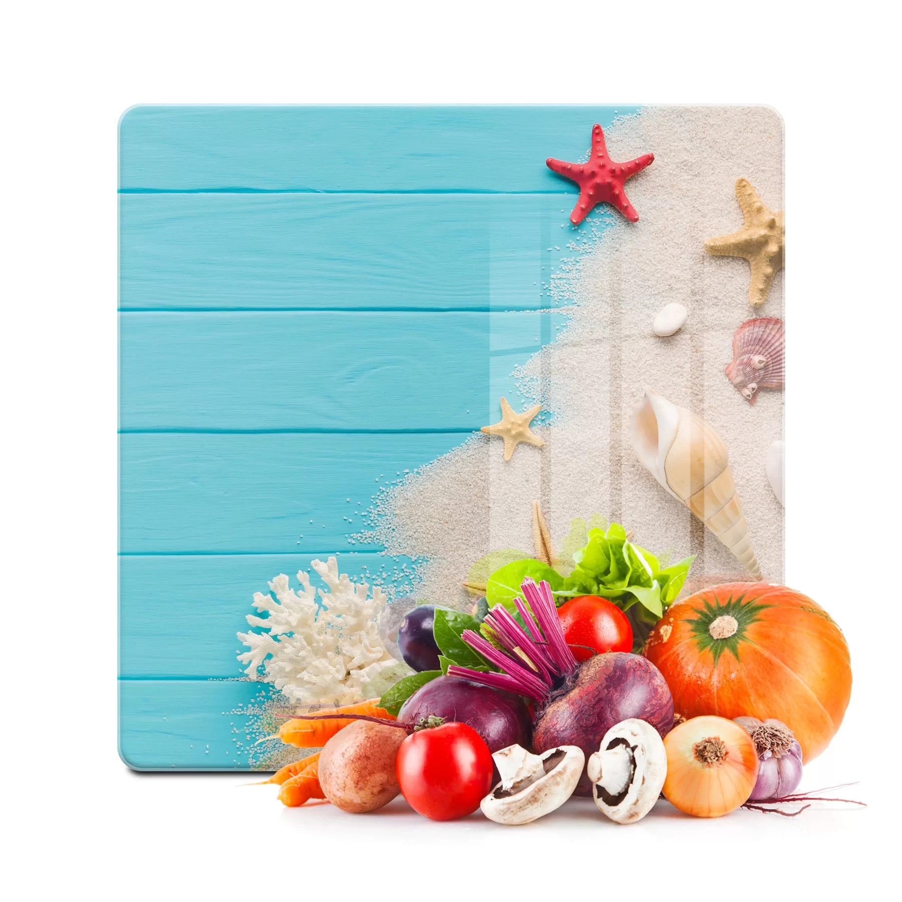 Decovetro Cam Kesme Tahtası ve Sunumluk Kare Turkuaz Yaz Desenli 30x30 Cm