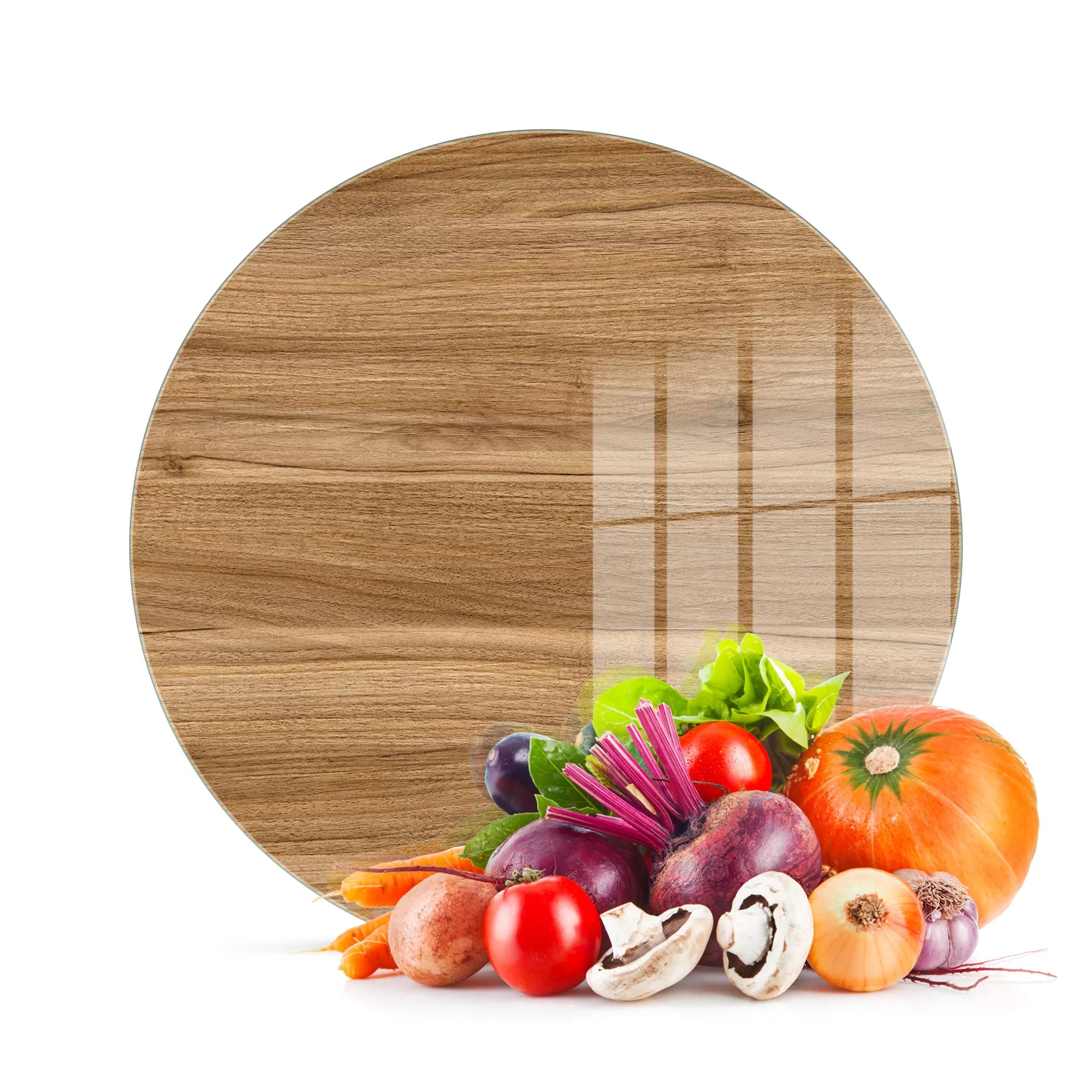 Decovetro Cam Kesme Tahtası ve Sunumluk Yuvarlak Açık Ahşap Meşe Desenli 30x30 Cm