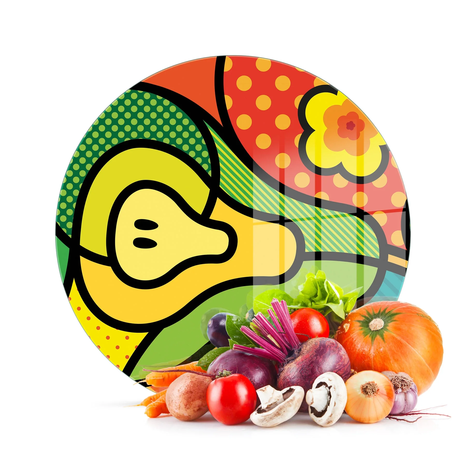 Decovetro Cam Kesme Tahtası ve Sunumluk Yuvarlak Armut Desenli 30x30 Cm