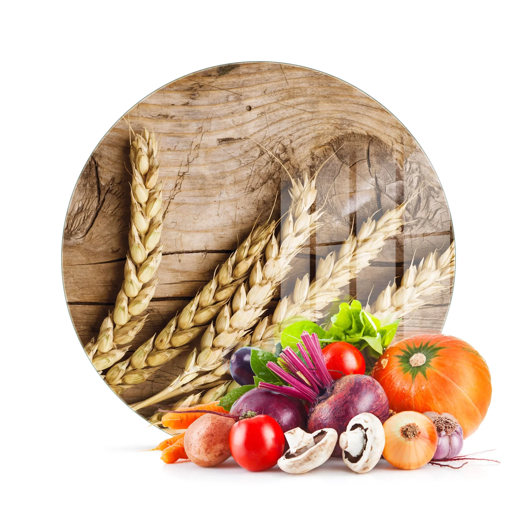 Decovetro Cam Kesme Tahtası ve Sunumluk Yuvarlak Burçak Desenli 30x30 Cm