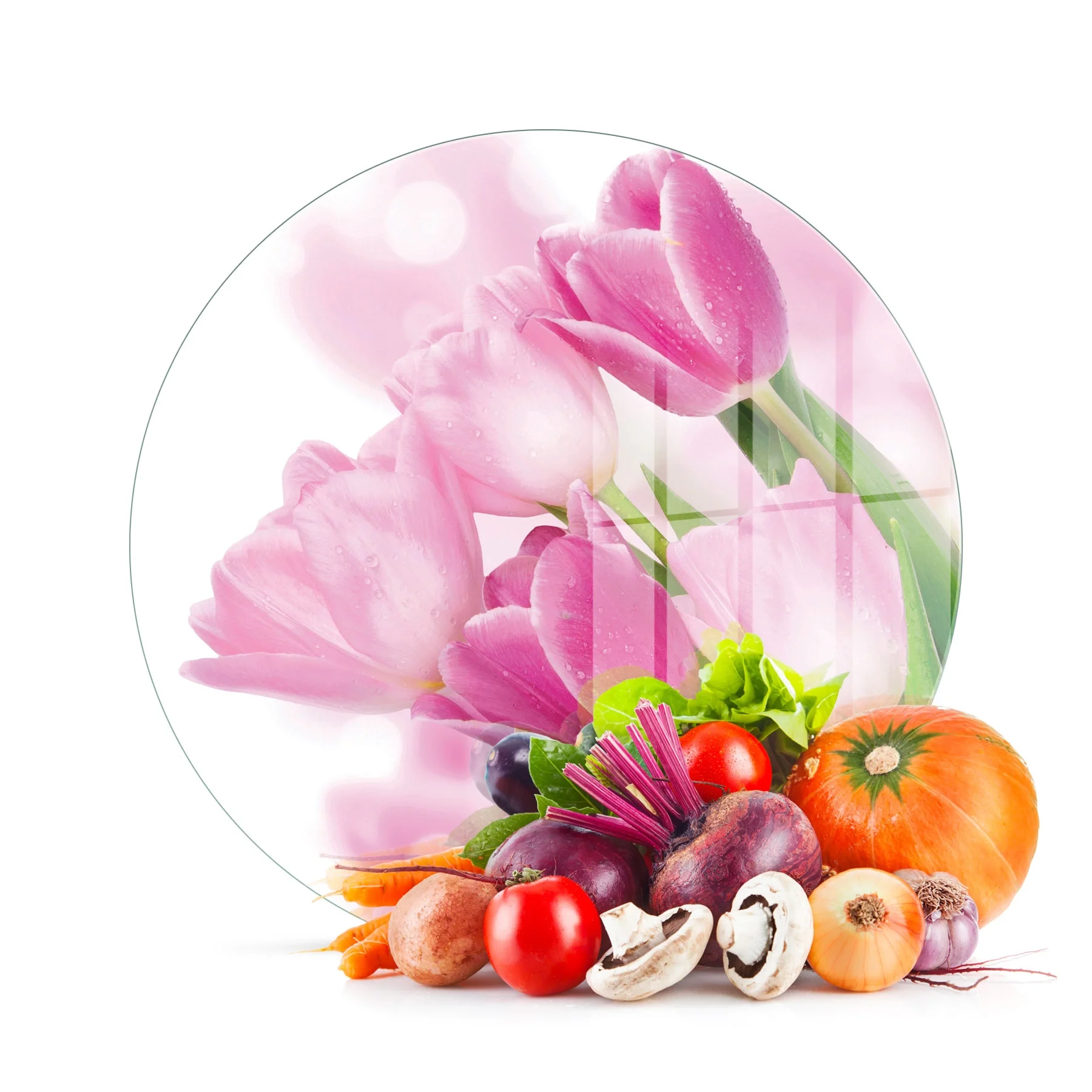 Decovetro Cam Kesme Tahtası ve Sunumluk Yuvarlak Lale Desenli 30x30 Cm