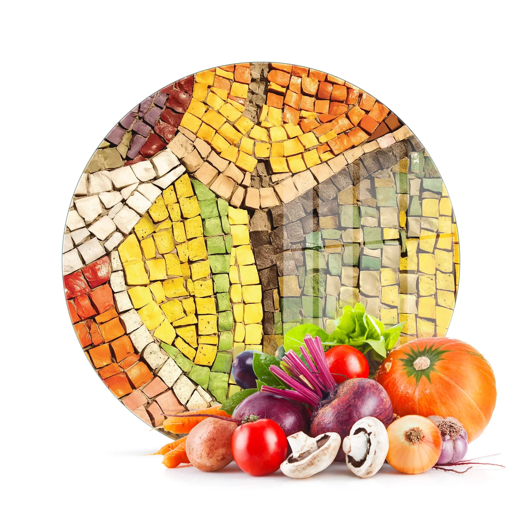 Decovetro Cam Kesme Tahtası ve Sunumluk Yuvarlak Mozaik Desenli 30x30 Cm