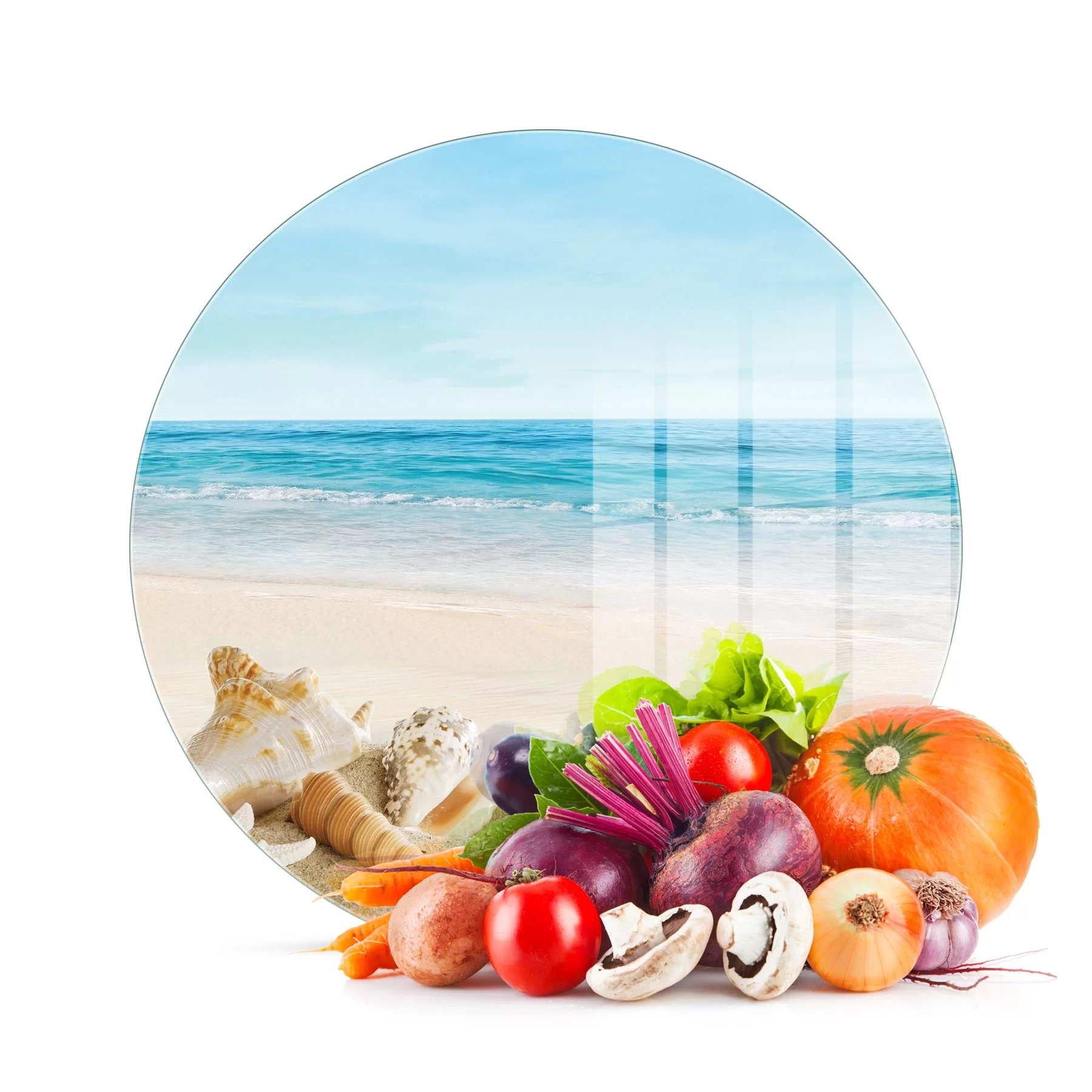 Decovetro Cam Kesme Tahtası ve Sunumluk Yuvarlak Sahil Deniz Yıldızı Desenli 30x30 Cm