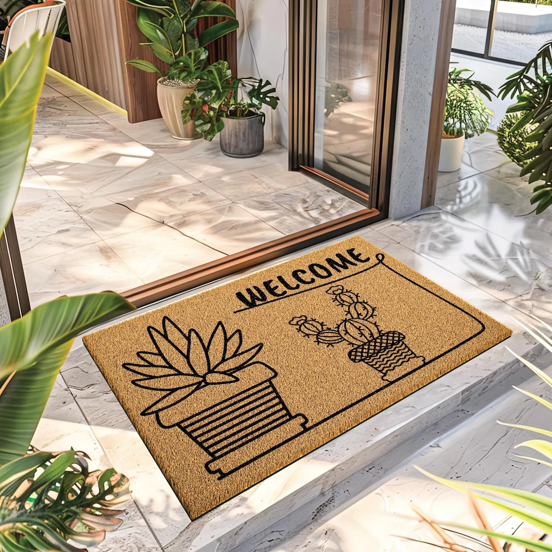Decovetro Paspas Kaktüs Desenli Kapı Önü Paspası 40 x 60 Cm
