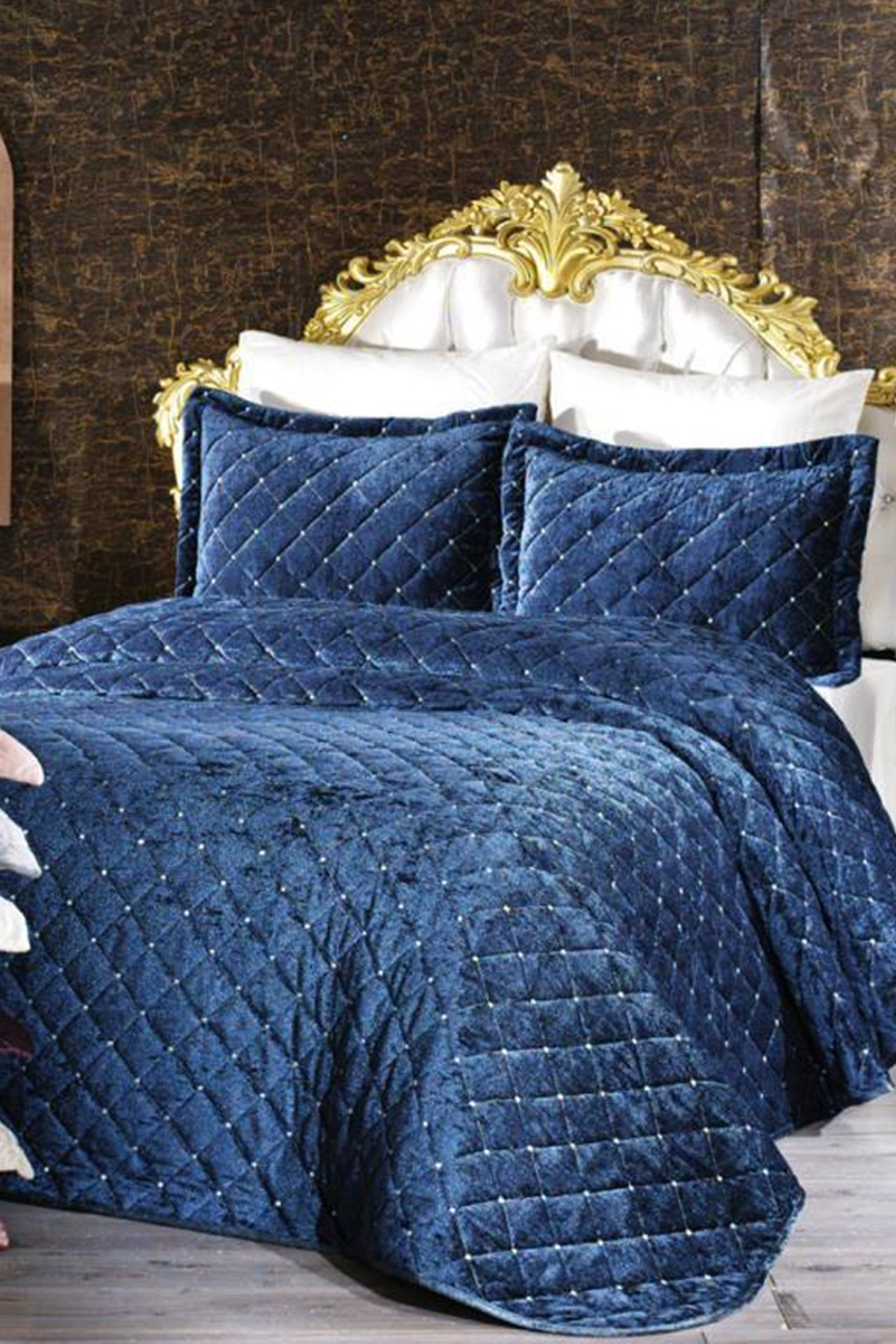 Dessert Kadife Çift Kişilik Yatak Örtüsü Lacivert