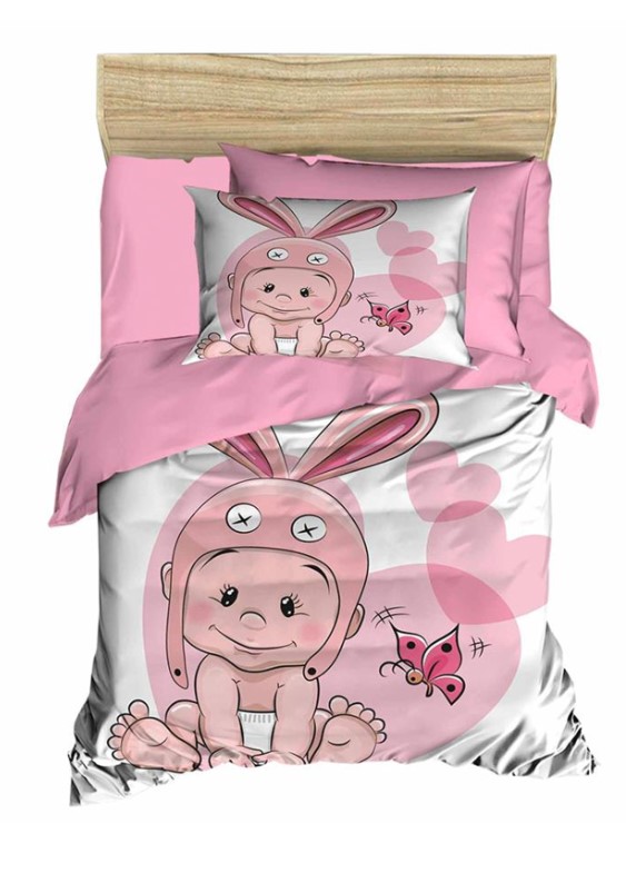 Dijital Baskılı 3d Bebek Nevresim Takımı Rabbit Baby Pembe