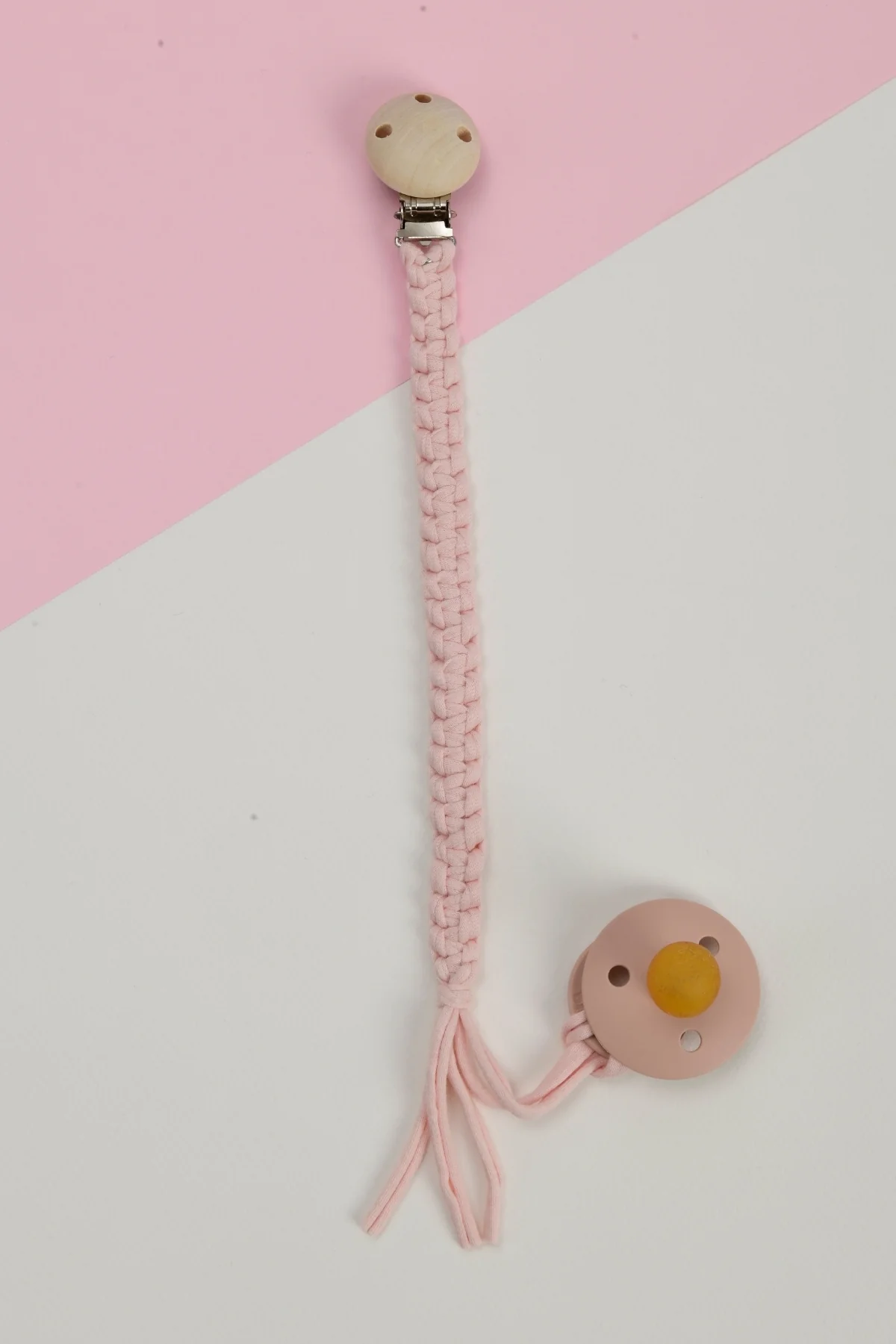 El Örmesi Doğal Ahşap Emzik Askısı - Düz - Pembe