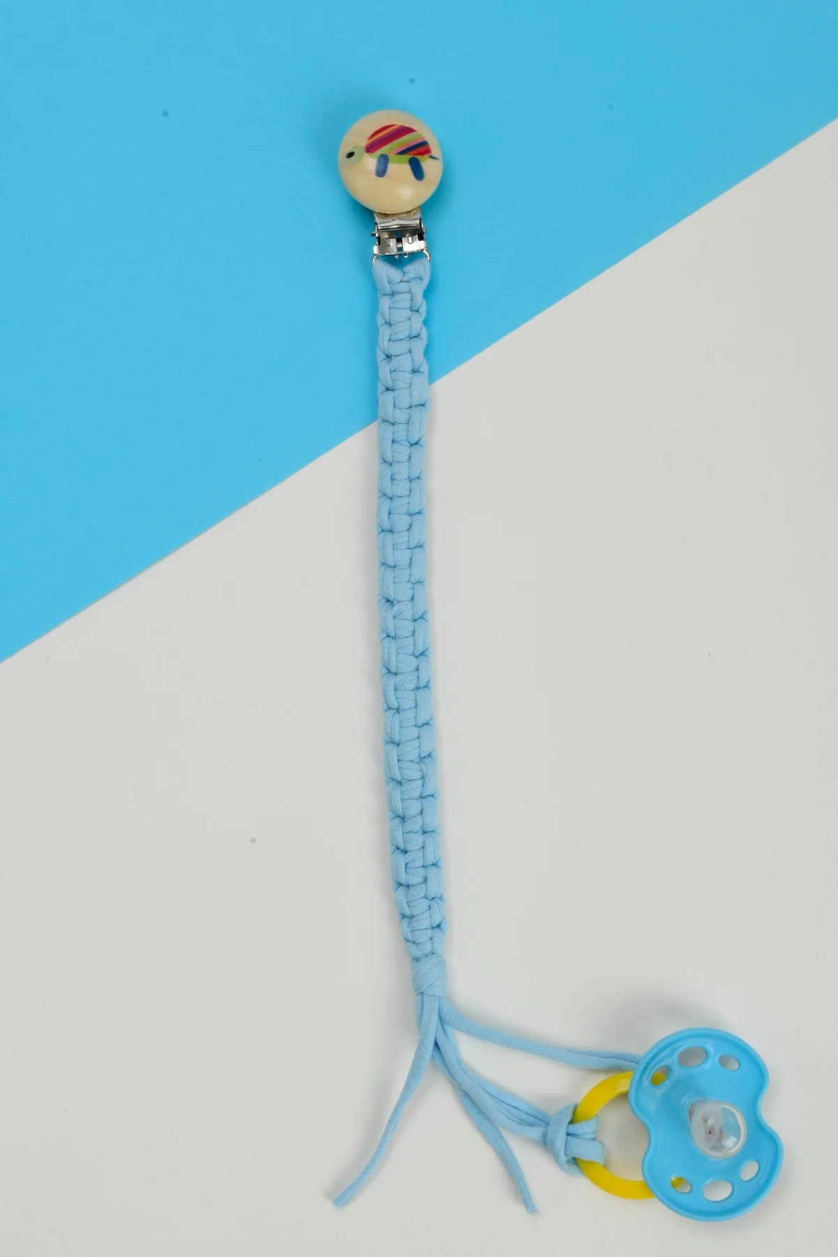 El Örmesi Doğal Ahşap Emzik Askısı - Kaplumbağa - Mavi