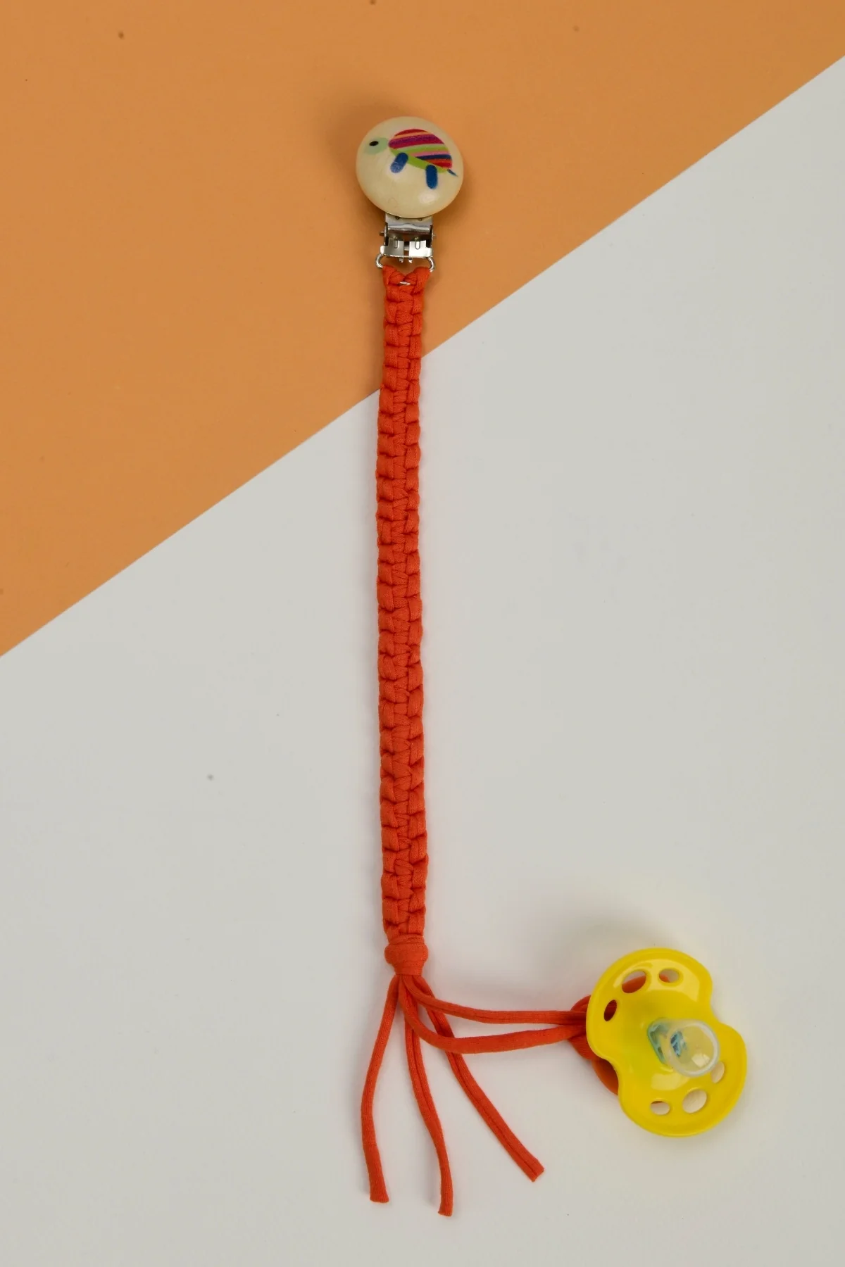 El Örmesi Doğal Ahşap Emzik Askısı - Kaplumbağa - Turuncu