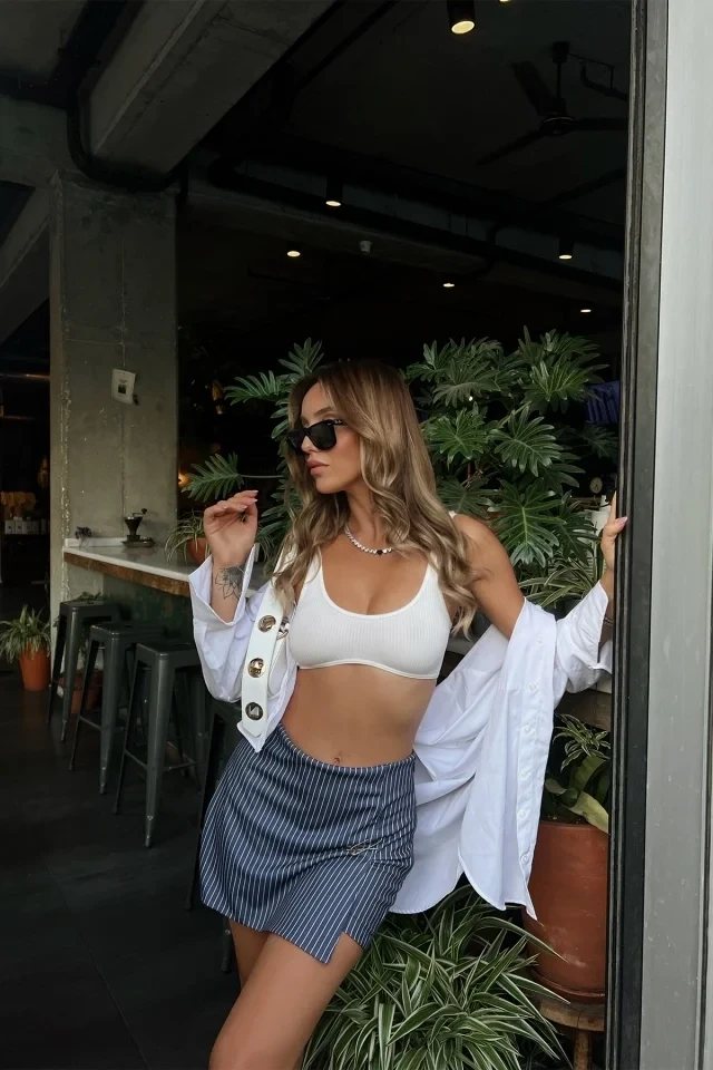 Elsa Navy blue mini skirt Made from micro fabric Size XS is used in the image Skirt Length:36cm Waist:34cm Model Measurements Height 168 Weight 50 Chest 80 Waist 60 Hip 90
