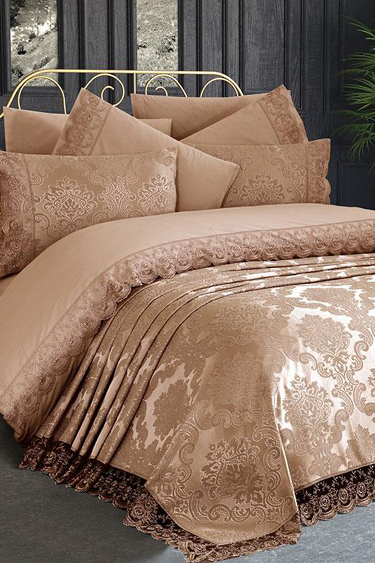Fransız Dantelli Kure Gelin Seti 7 Parça Cappucino