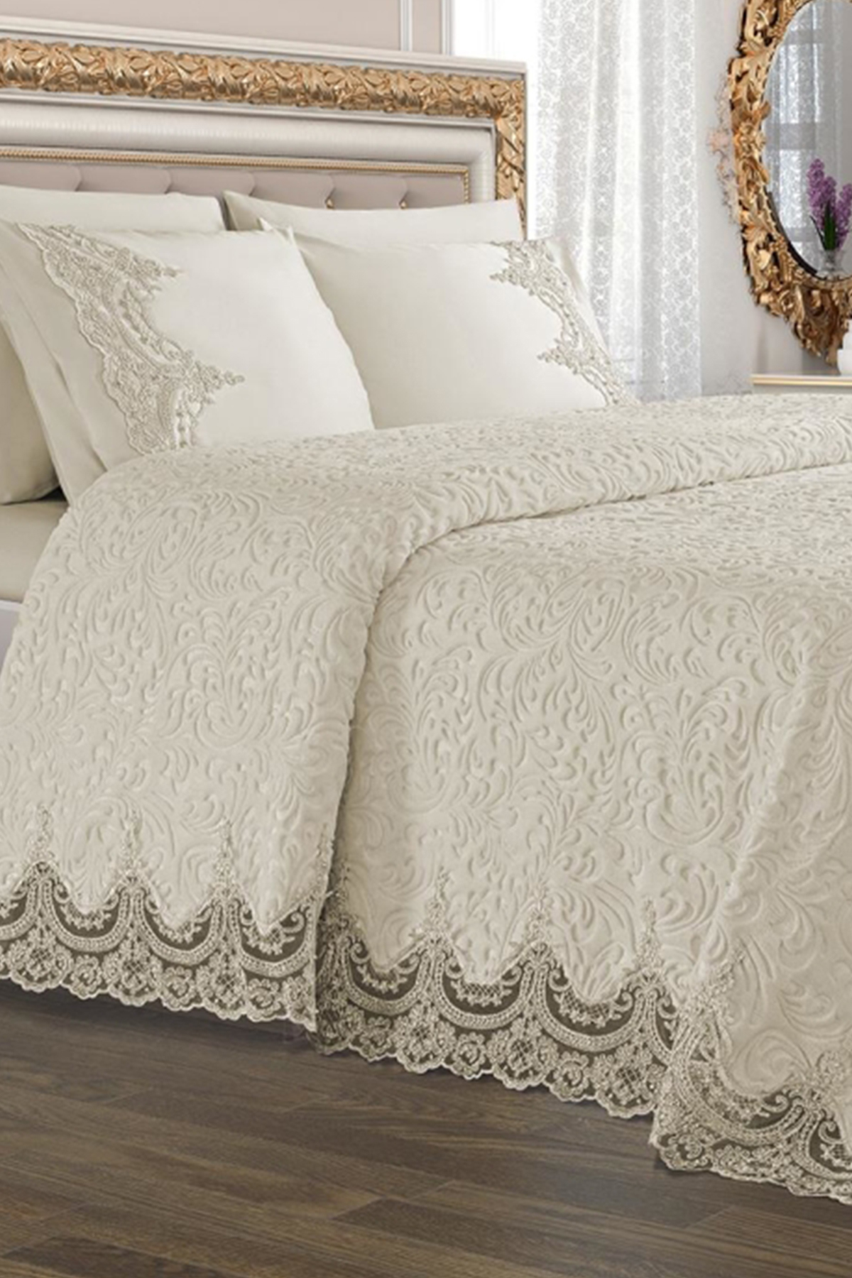 Fransız Güpürlü Çeyizlik Battaniye Takımı Arus Krem