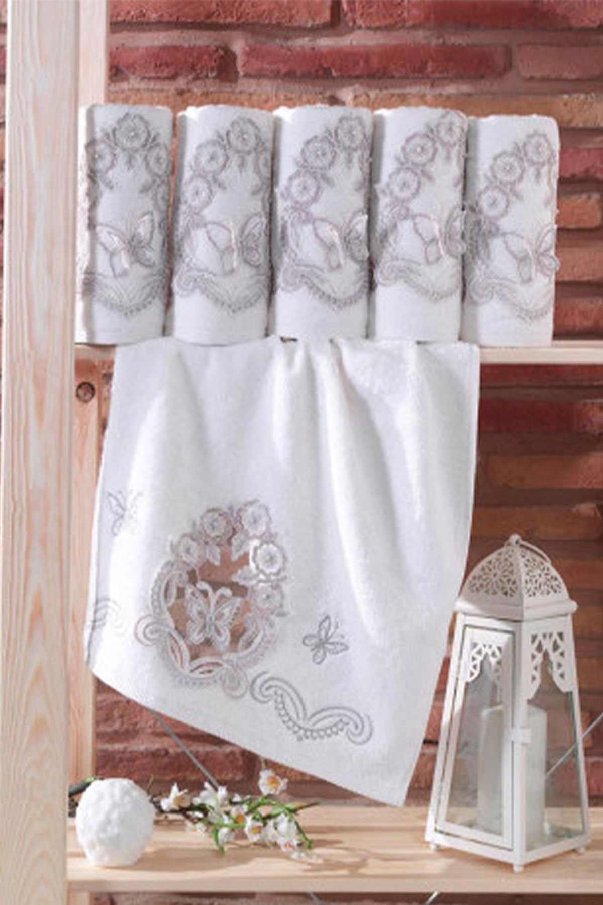 Fransız Güpürlü Kelebeğim Çeyizlik Bambu Havlu Krem