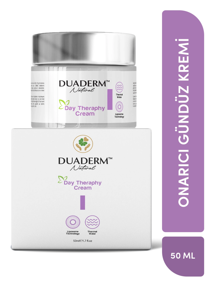 Duaderm Kırışıklık Karşıtı, Onarıcı Day Therapy Cream 50 ml Doğal cilt bariyerinizi güçlendiren ve nem kaybını önleyen Day Therapy Cream, farklı C vitamini formları ve besleyici Baobab yağı ile gün boyu tazelik ve koruma sunar. Zamana meydan okuyan etkisiyle ince çizgi ve derin kırışıklıkların izlerini hafifletirken, mat ve donuk ciltlere eşsiz bir canlılık ve kusursuz ton vadeder. C Vitamini ve Baobab Yağıyla Canlı, Korunaklı ve Dengeye Kavuşan Cilt Gün boyu süren koruma ve bakım arayanlar için tasarlanan bu özel formül, güçlü C vitamini çeşitleriyle cildinize enerji verir. Baobab yağı ise cildin doğal bariyerini besleyerek nem kaybını önler ve esnekliğini artırmayı hedefler. İnce çizgilerin ve kırışıklıkların görünümünü azaltmaya destek olurken, mat ve donuk ciltleri aydınlatmaya yardımcı olur. Doğal içeriklerin bir araya geldiği bu krem, sağlıklı bir ışıltı için günün her anında yanınızda. Kimler için Uygun? Renk tonundaki düzensizliklere ve mat, donuk görünüme sahip normal ciltler için özel olarak tasarlanmış, yenileyici ve dengeleyici bir bakım deneyimi sunar Ürün İçeriği ve Aktif Bileşenler Aqua, Ascorbyl Tetraisopalmitate, Cetearyl Alcohol, Glyceryl Stearate, Stearic Acid, Ceteareth-20,Ceteareth-12,Heptyl Undecylenate, Adansonia Digitita Seed Oil, Aloe Barbadensis Leaf Extract,Cetyl Palmitate,Panthenol, Phenoxyethanol, Simmondsia Chinensis Seed Oil, Ascorbyl Palmitate, Ethylhexylglycerin, Glycerin, Pentylene Glycol, Phosphatidylcholine, Propylene Glycol, Polysorbate 80, Sodium Hyaluronate, Tocopherol Acetate, Tocopherol, Parfum. Nasıl Kullanılır? Sabah güne başlarken, temizlenmiş yüz ve boynunuza parmak uçlarınızla uygulayın. Göz çevresinden özenle uzak tutun, çünkü o hassas bölgeye başka bakım ürünleri gerekir. Gündüz rutininizin vazgeçilmezi olarak tercih edin.