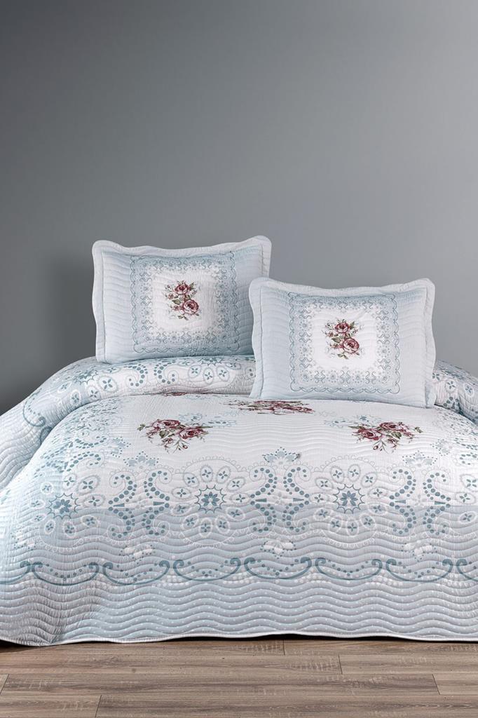 Nerea Baskılı Kapitoneli Çift Kişilik Yatak Örtüsü Mavi