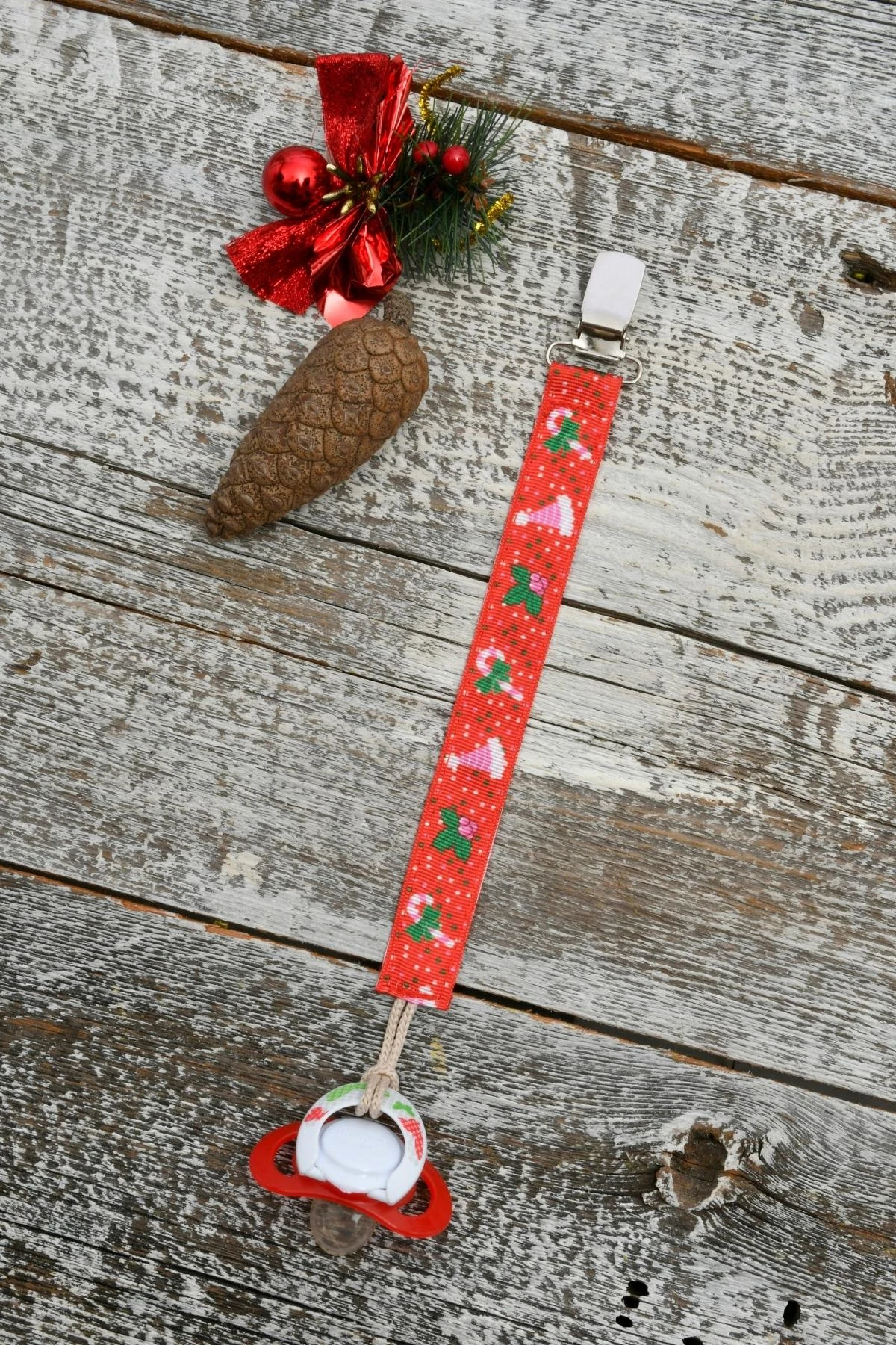 Noel Desenli Kırmızı Emzik Askısı - Yılbaşı Özel Koleksiyonu