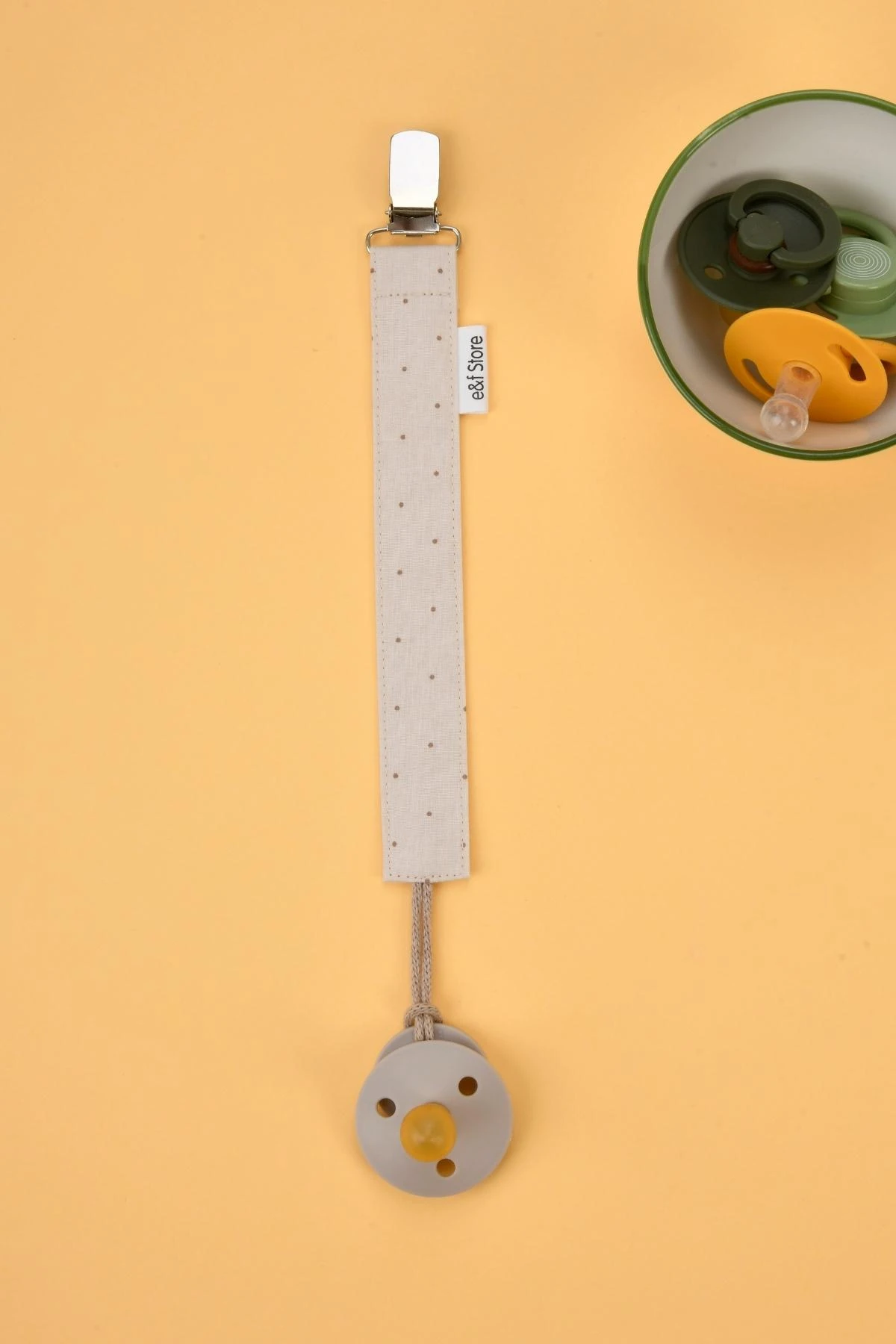 Pamuk Kumaşlı Emzik Zinciri – Puantiyeli Vizon