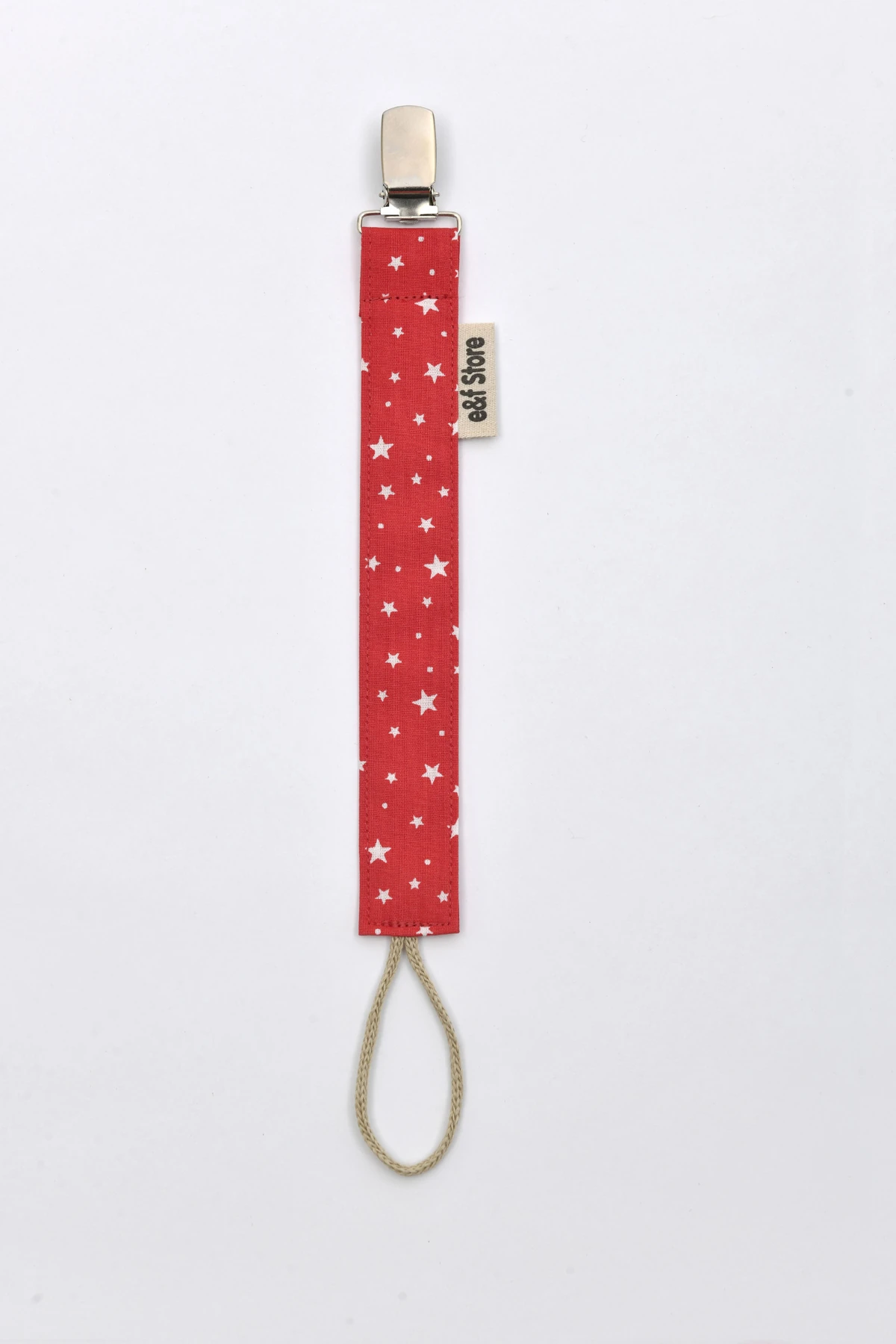 Pamuk Kumaşlı Emzik Zinciri – Yıldız Desenli Kırmızı
