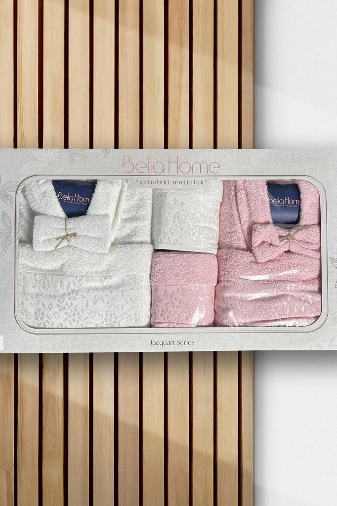 Platin Jakarlı 10 Parça Aile Bornoz Takımı Krem Pudra