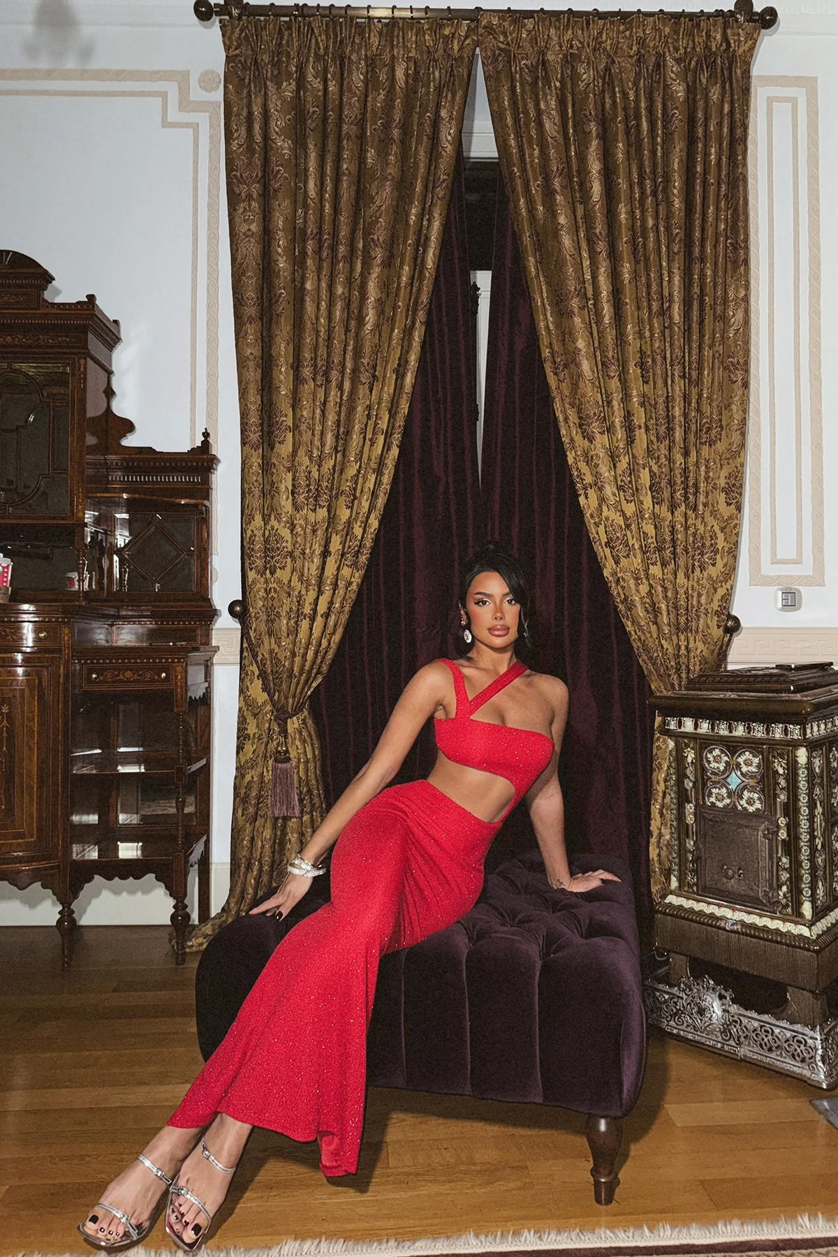 Red Lurex Strappy Dress