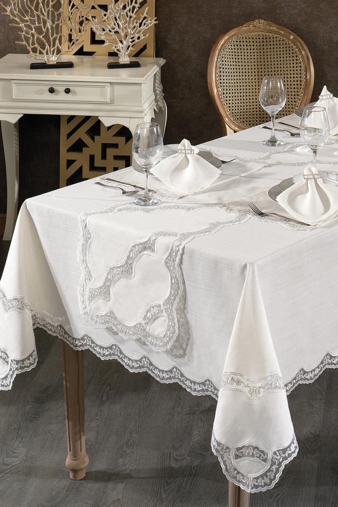 Rua Fransız Dantelli Keten Yemek Takımı - 26 Parça Krem