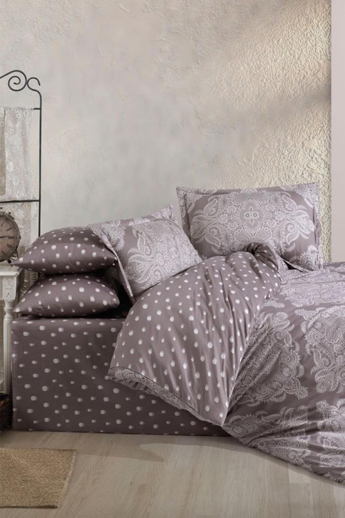 Ruby Pamuk Saten Çift Kişilik Nevresim Takımı Cappucino