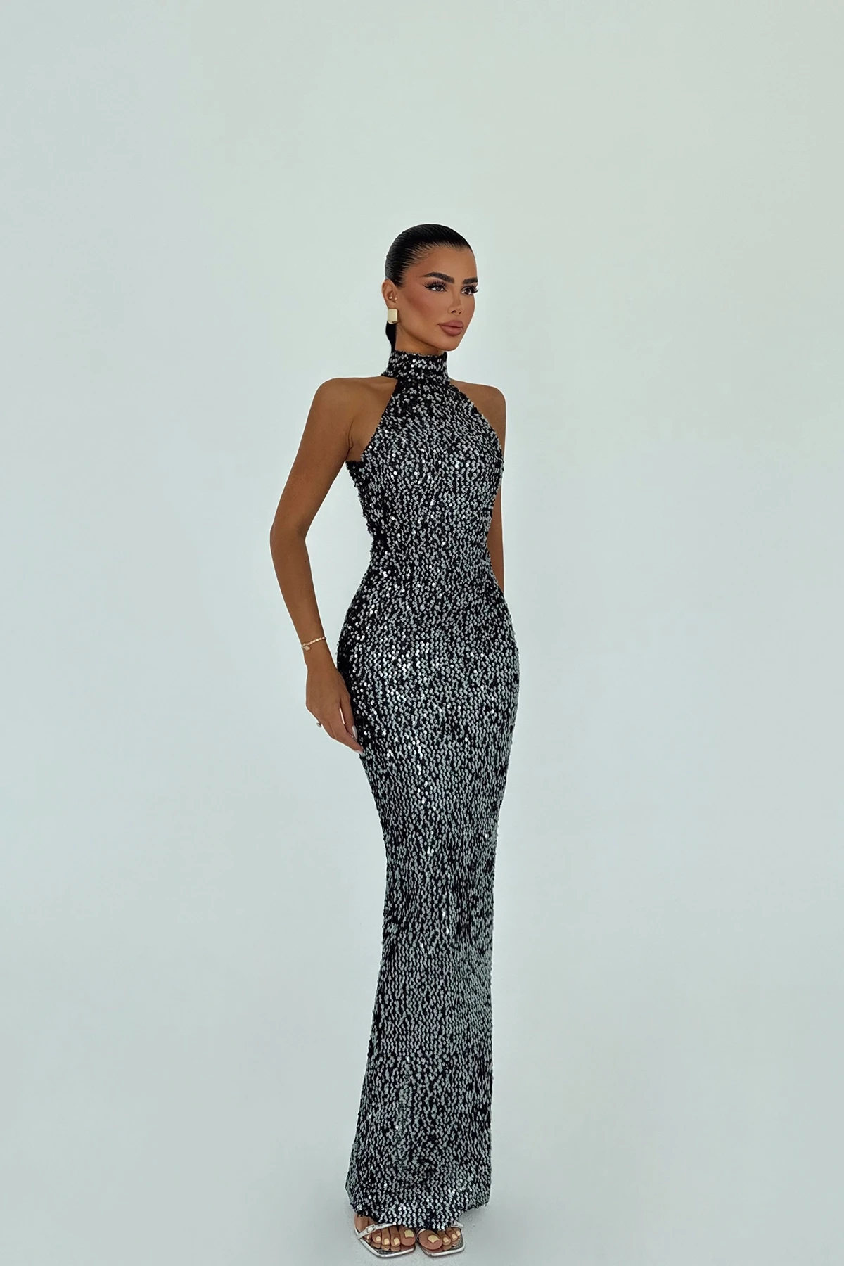 Turquoise Shion Sequined Dress The image shows size XS. Height: 146 cm Waist: 33 cm Chest: 36 cm Model Measurements Height: 160 Weight: 50 Chest: 80 Waist: 62 Hip: 94