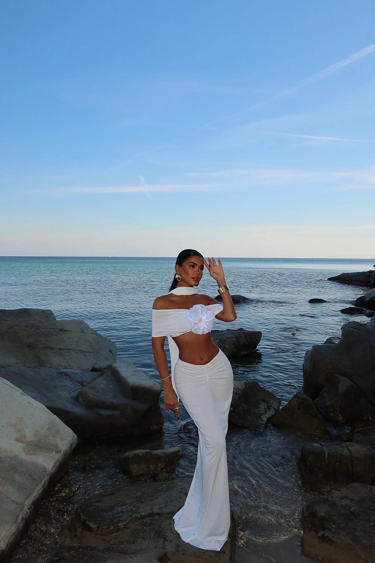 White Lotus Double Set Size XS is used in the image. Made from Sandy Fabric. Suit Top Length:22 Cm Chest:36 Cm Bottom Length:104 Cm Waist:34 Cm Model Measurements Height 158 ​​Weight 52 Chest 80 Waist 62 Hip 93