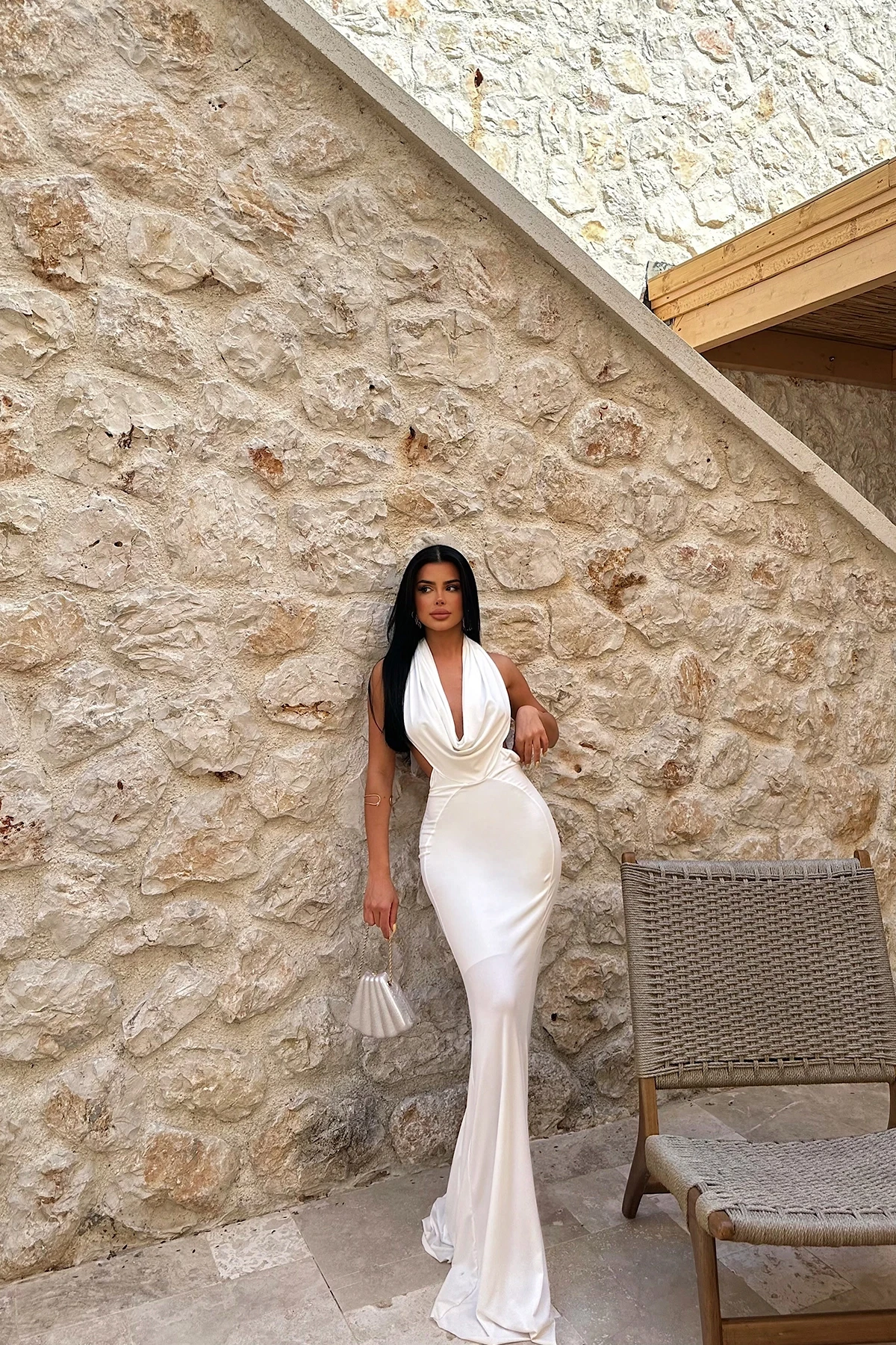 White Pamella Long Dress It is made of sandy fabric. Size S is used in the image Dress Length: 167 Cm Bust: 34 Cm Waist: 36 Cm Hips: 38 Cm Model Measurements: Height: 160 Weight: 50 Chest: 80 Waist: 62 Hip: 94