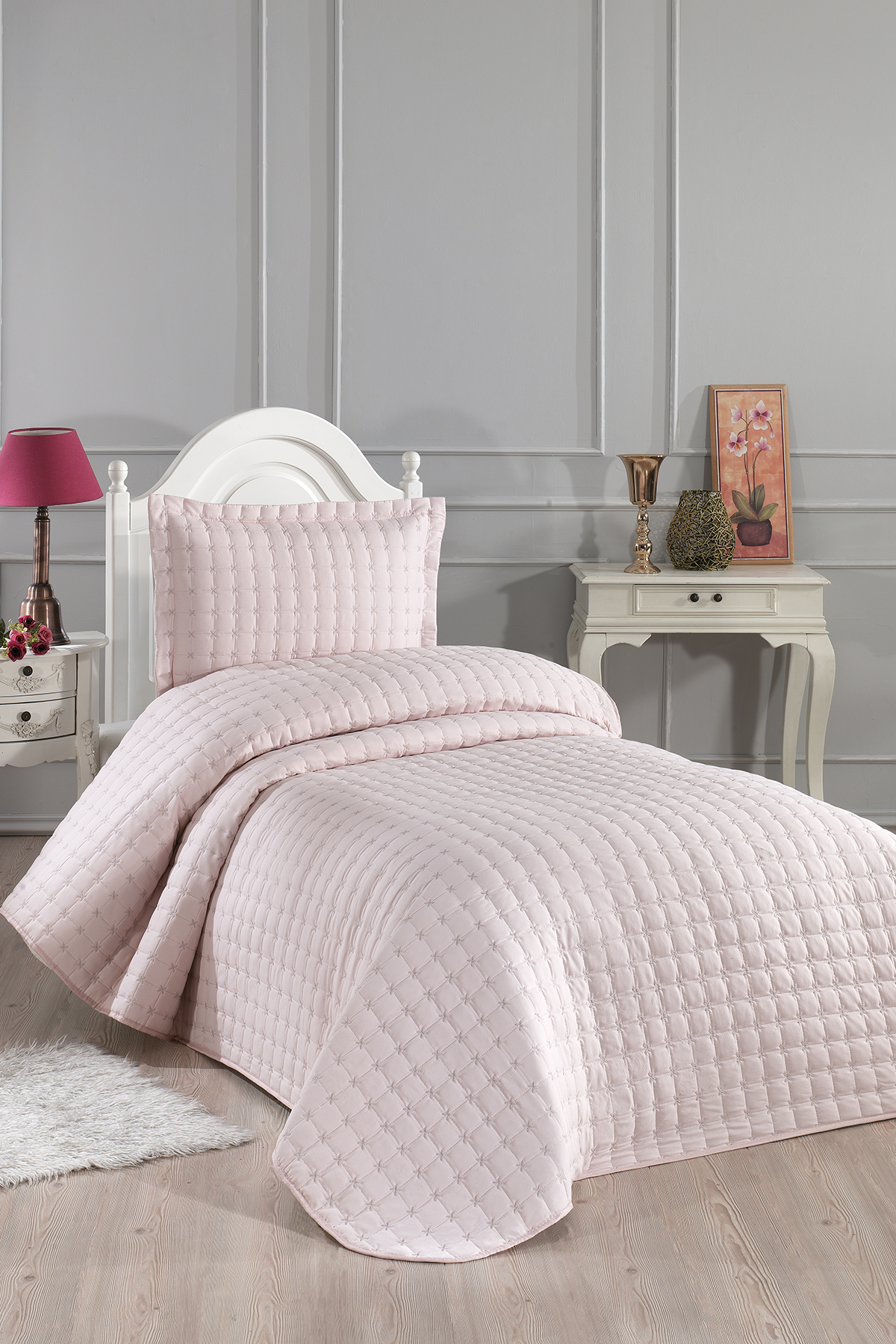 Yıldız Tek Kişilik Kapitoneli Yatak Örtüsü Pudra
