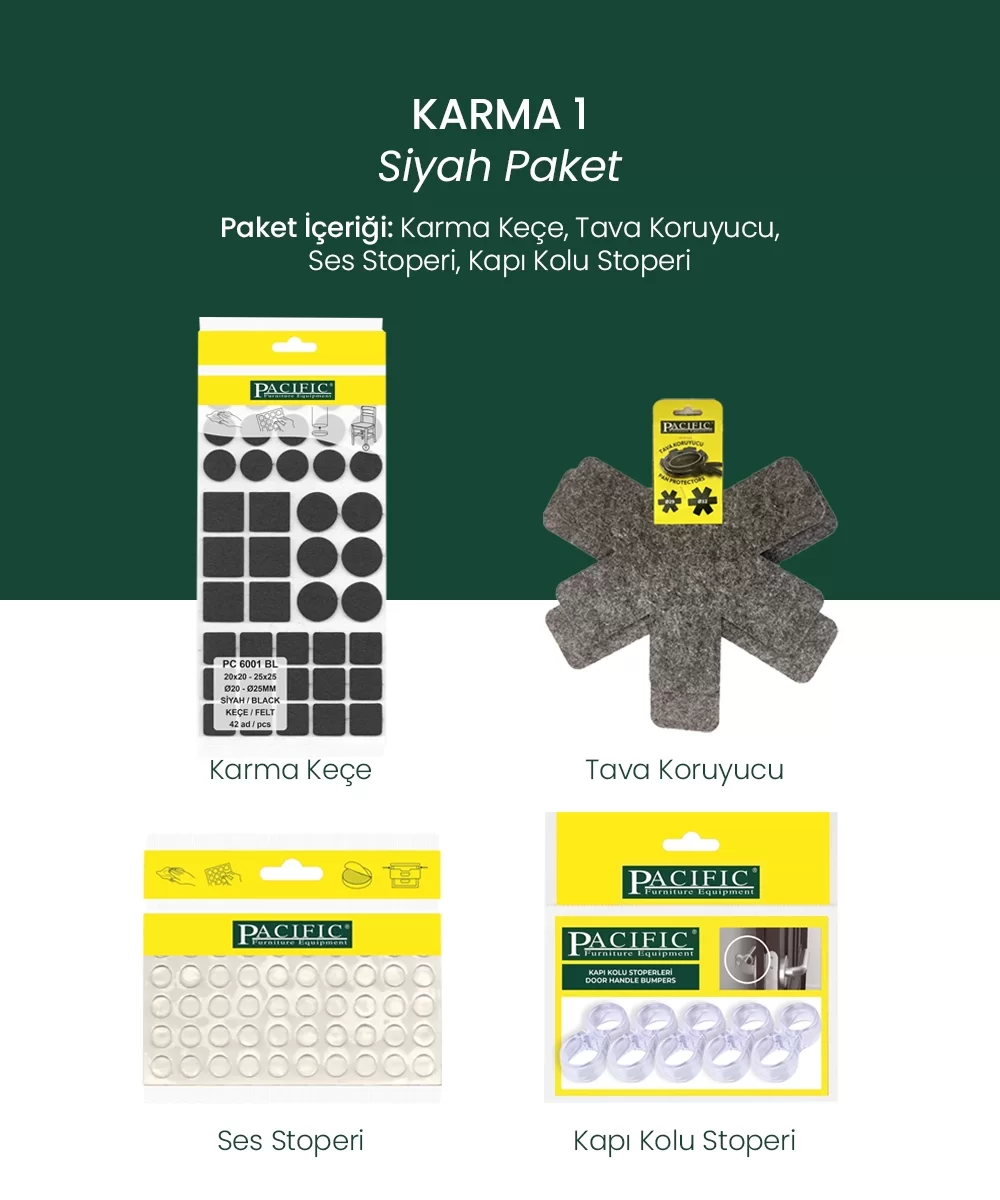 Yapışkanlı Karma Mobilya Keçesi + Ses Stoperi + Kapı Stoperi ve Çizilmez Tava Koruyucu Keçe Seti
