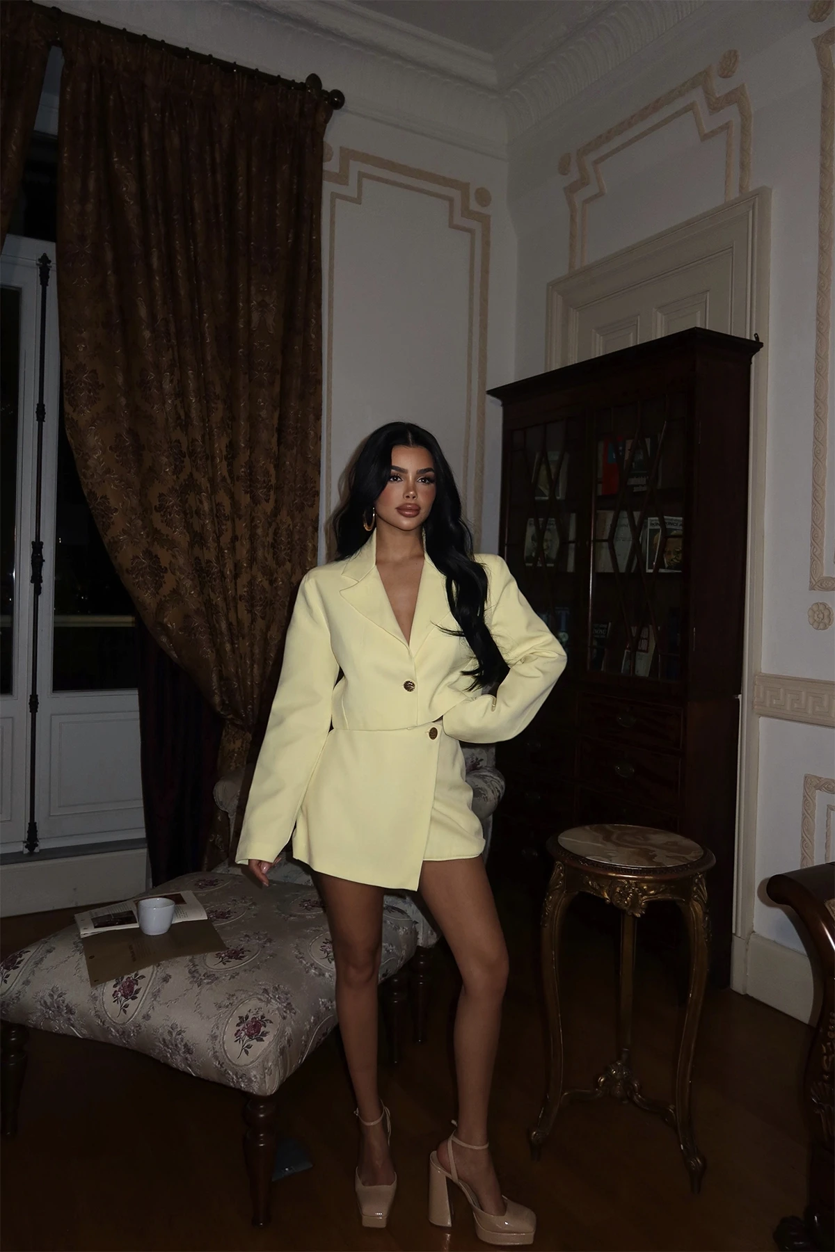 Yellow Delia Set Size XS is used in the image. Top Length: 46 Cm Bust: 51 Cm Bottom Length: 35 Cm Waist: 39 Cm Model Measurements Height 158 ​​Weight 52 Chest 80 Waist 62 Hip 93